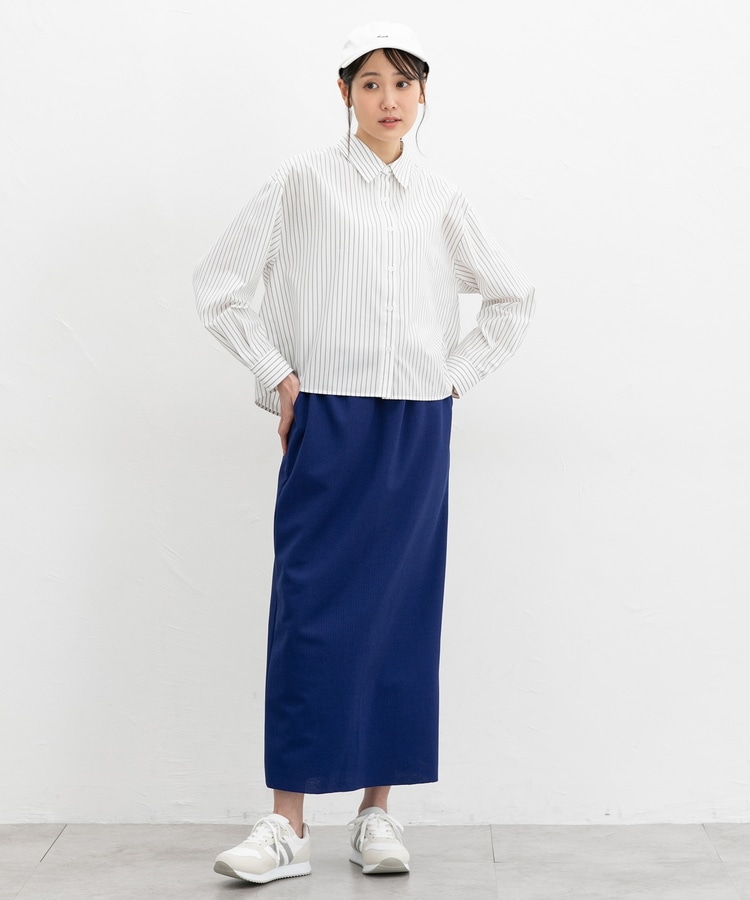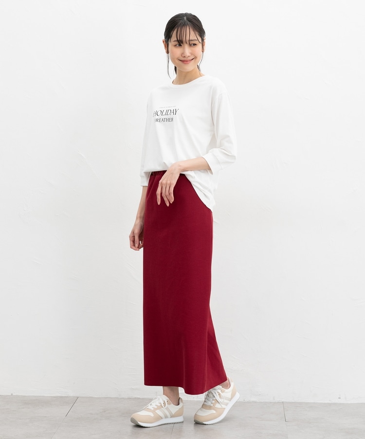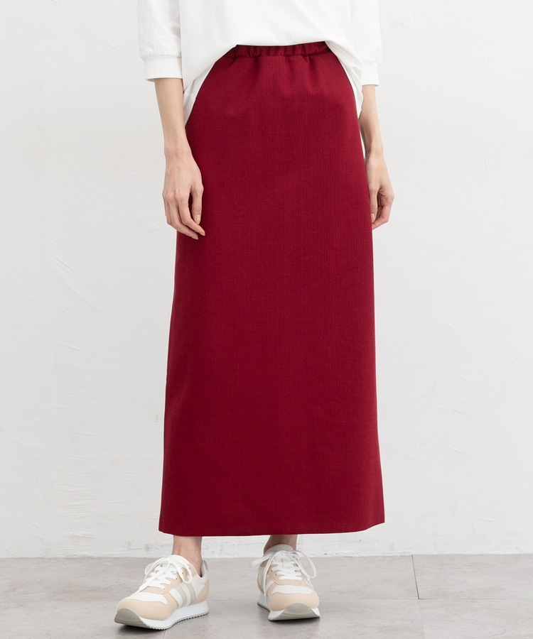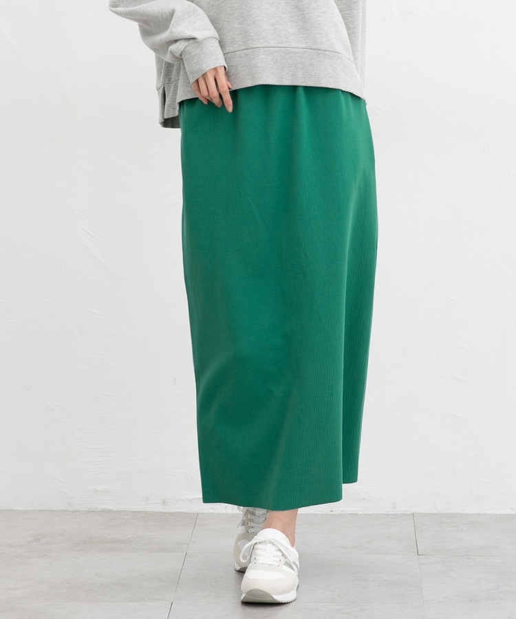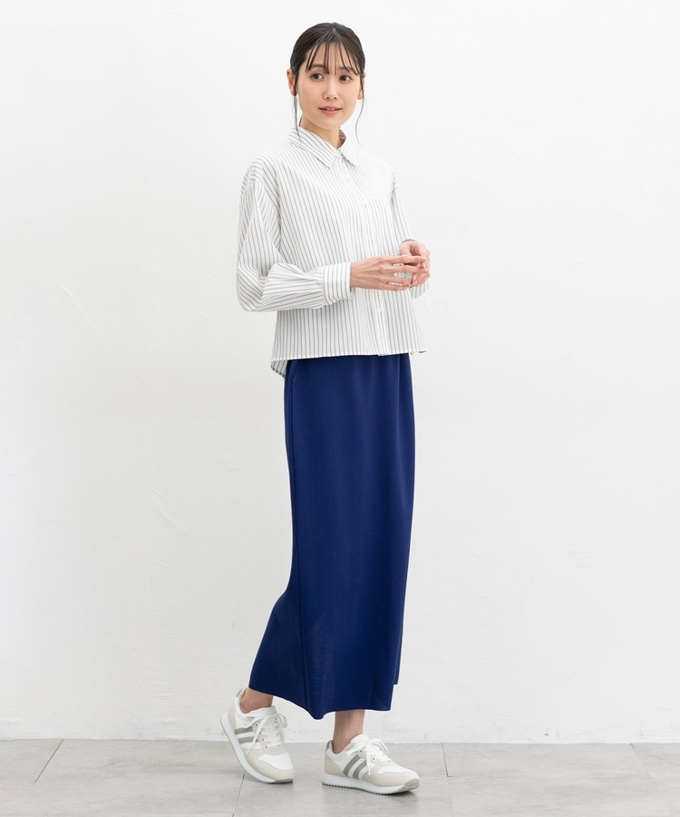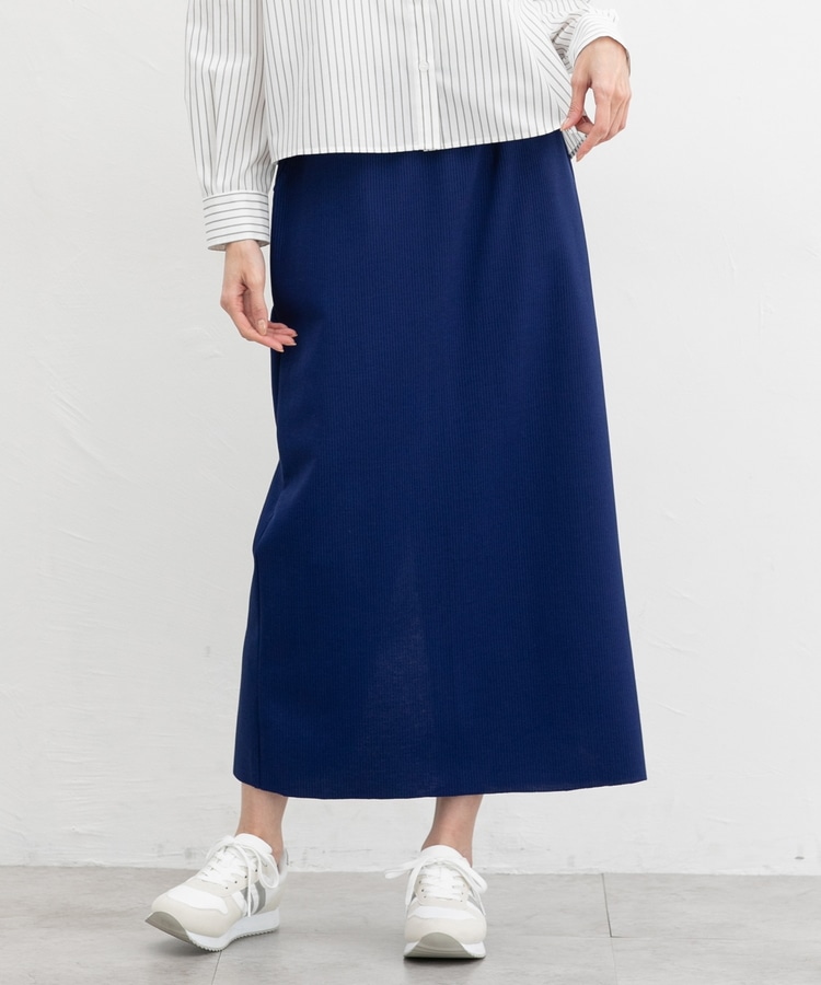 縦の編み目とすとんとしたIラインシルエットで脚長効果抜群のシンプルデザイン。