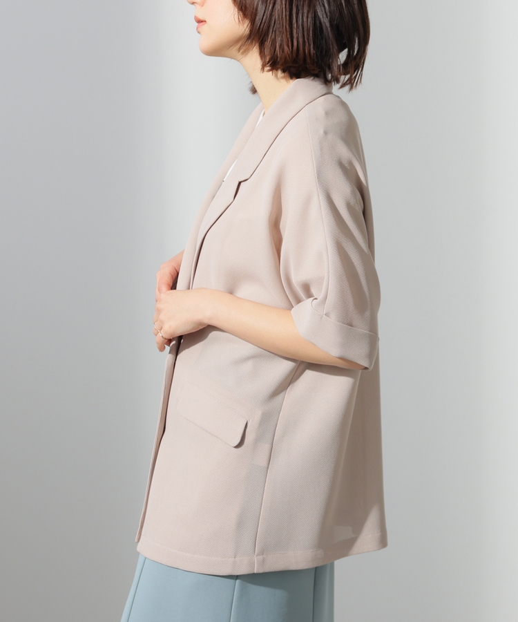 ゆるめのトップスにも合わせやすいドルマンスリーブと折り返しの袖口で、気になる二の腕をおしゃれにカバー。