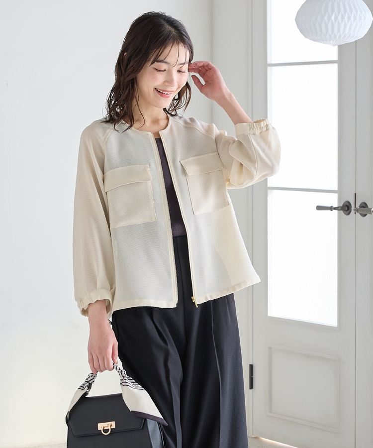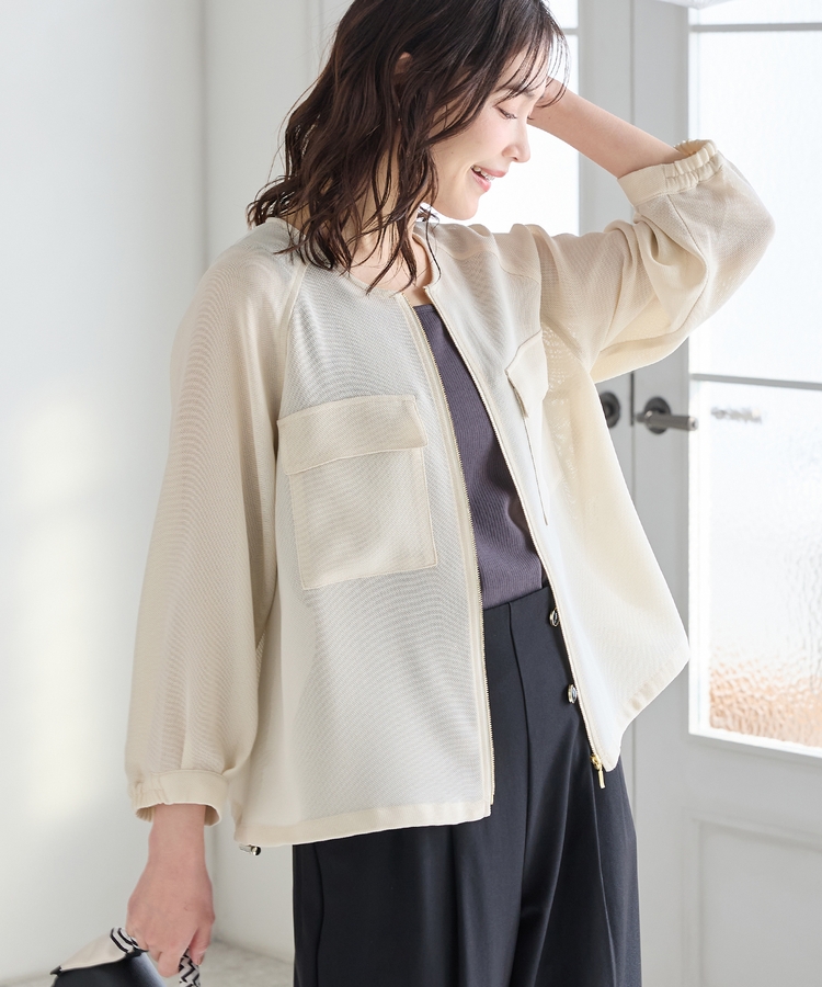 8分袖メッシュブルゾン