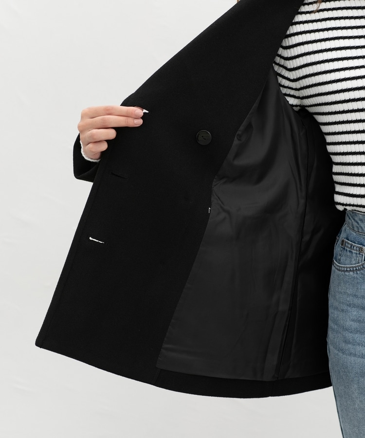 環境に優しい再生ポリエステルを使用した、軽くて暖かなフェイクウール素材。
