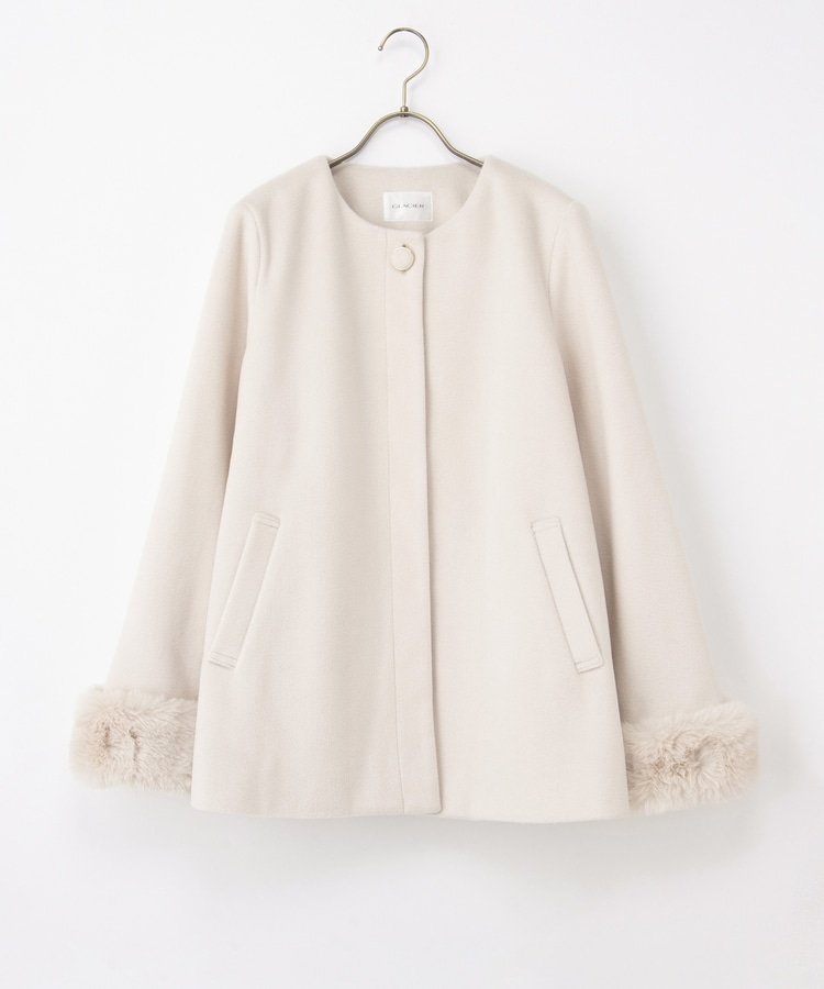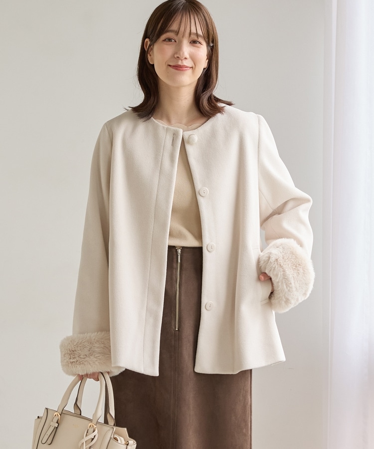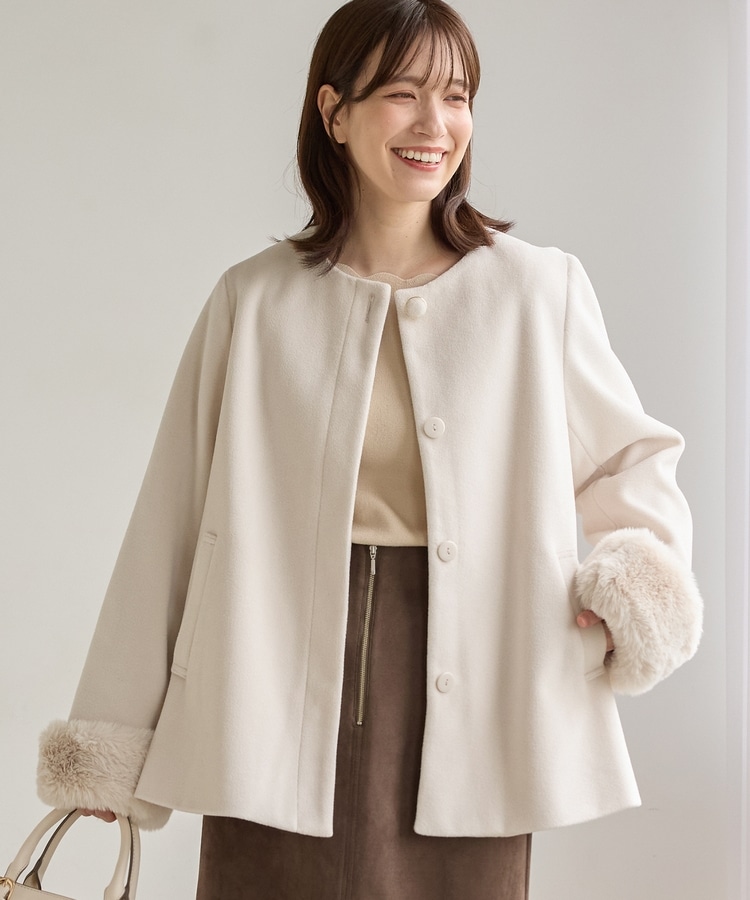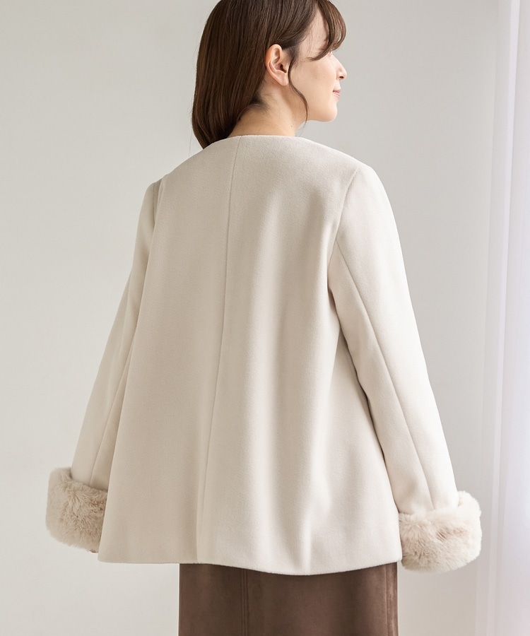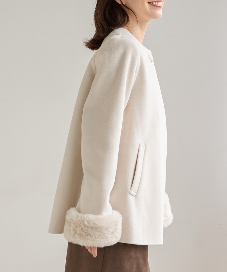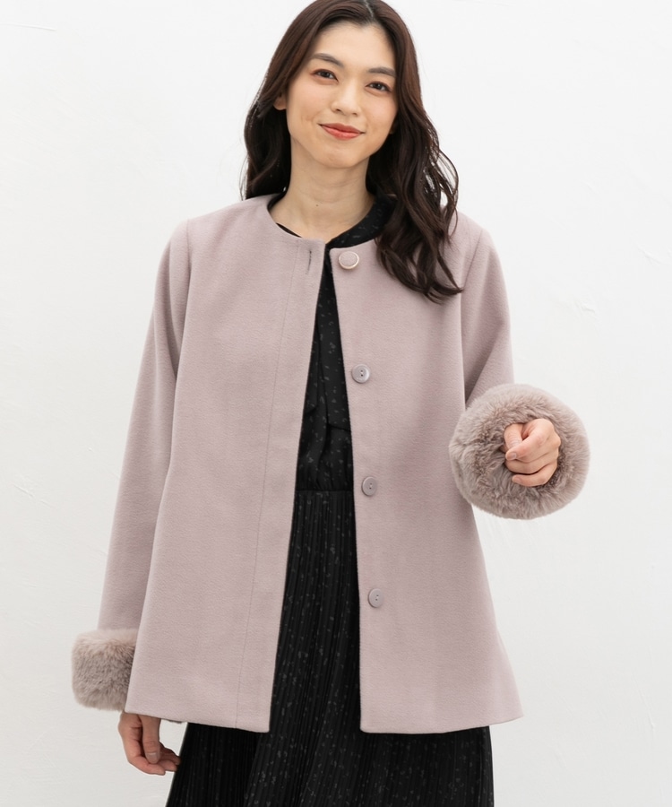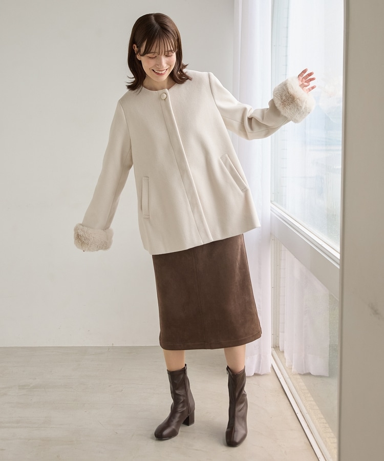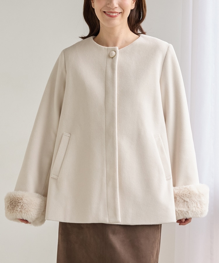 ファー付ノーカラーコート