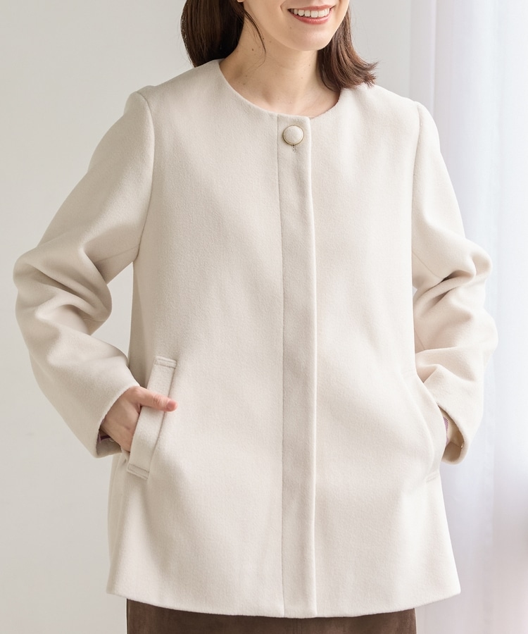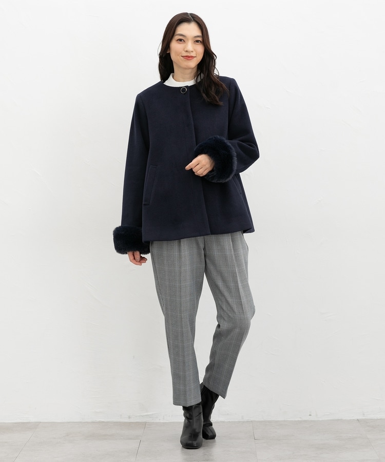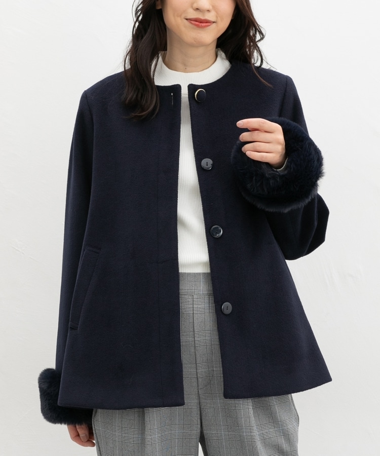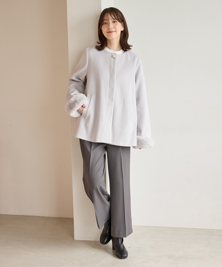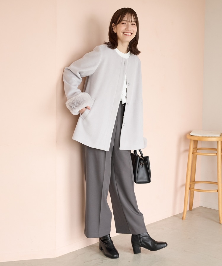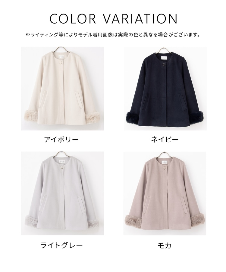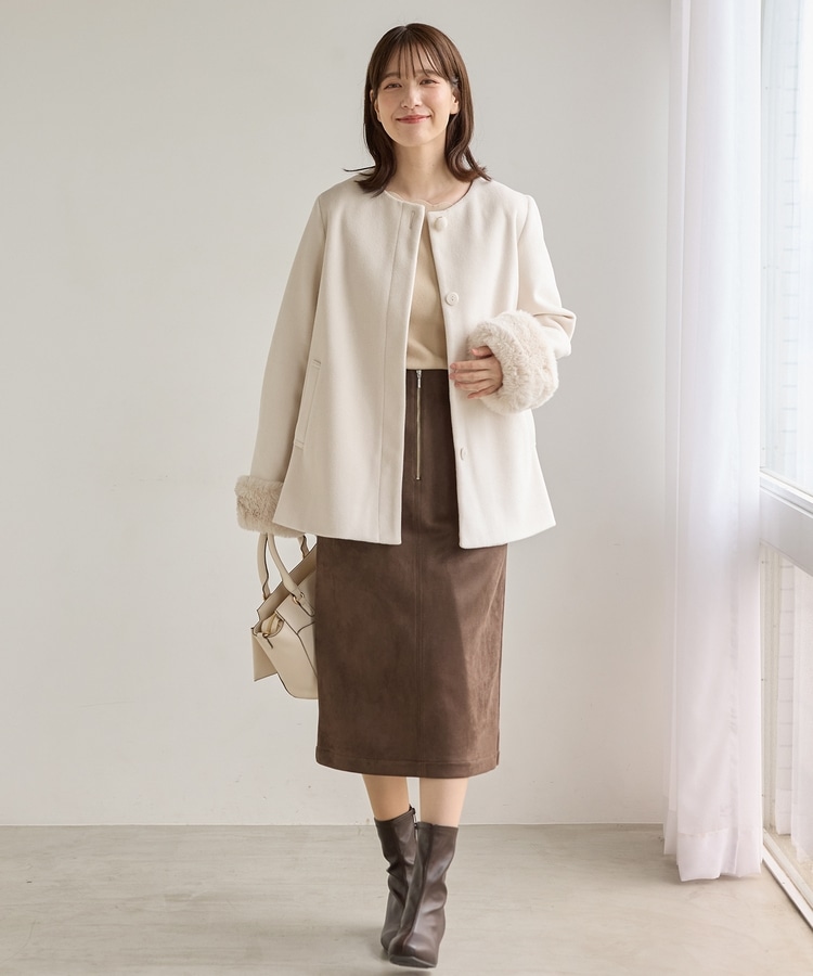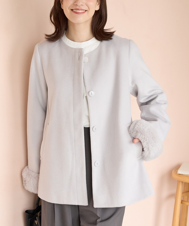 ファー付ノーカラーコート