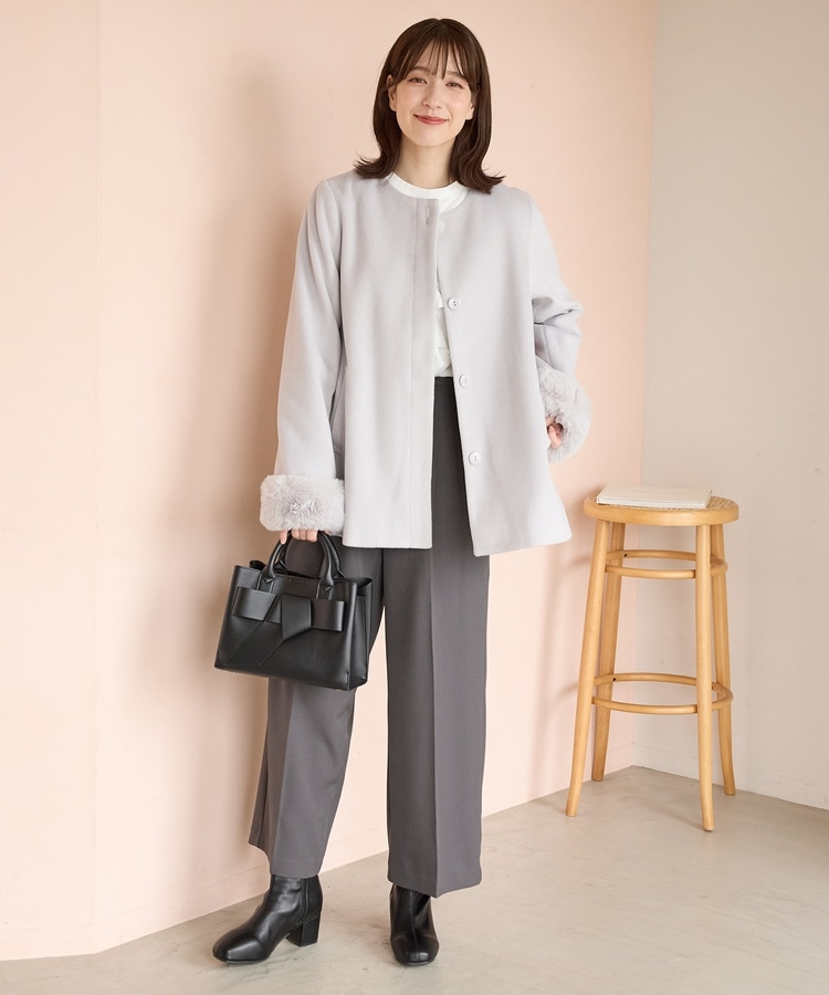 袖口のフェイクファーが大人可愛いデザイン。