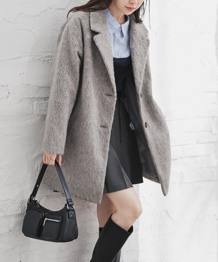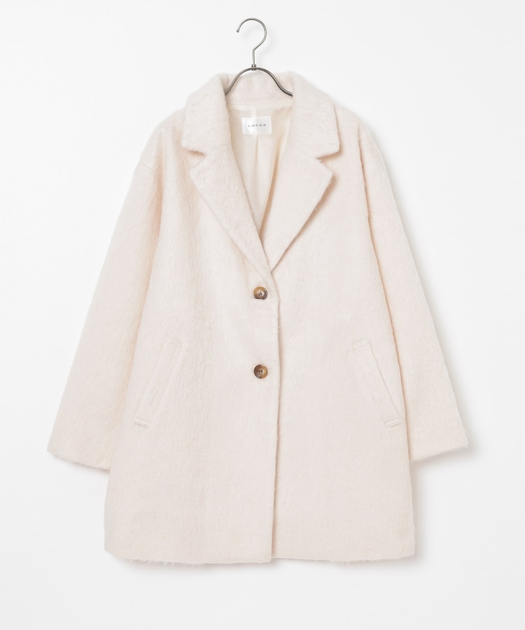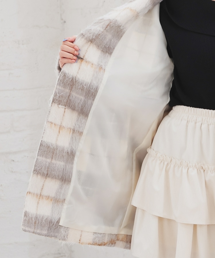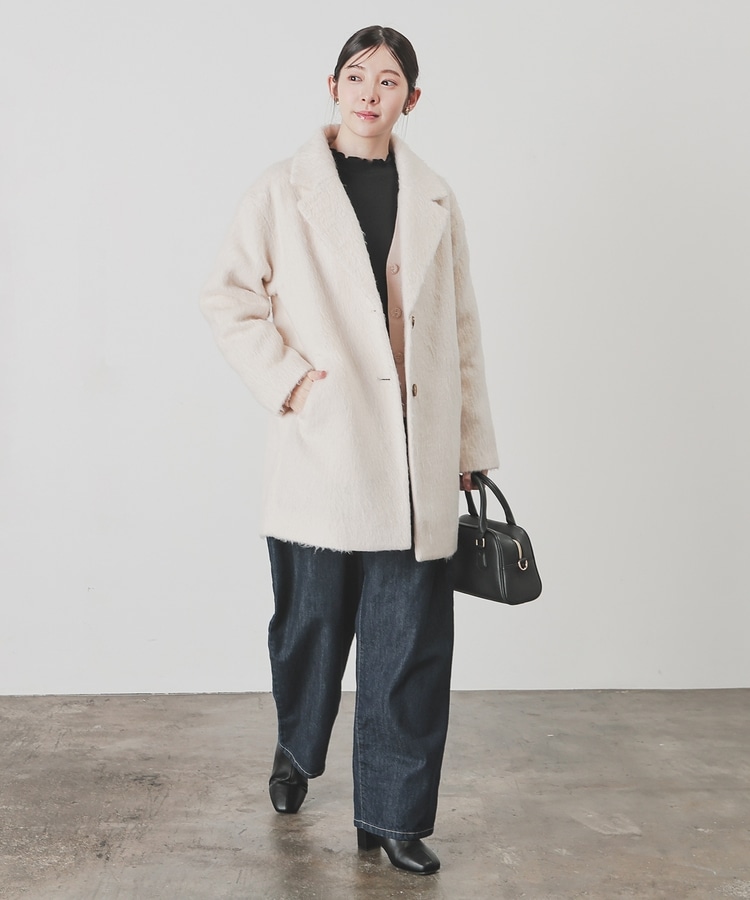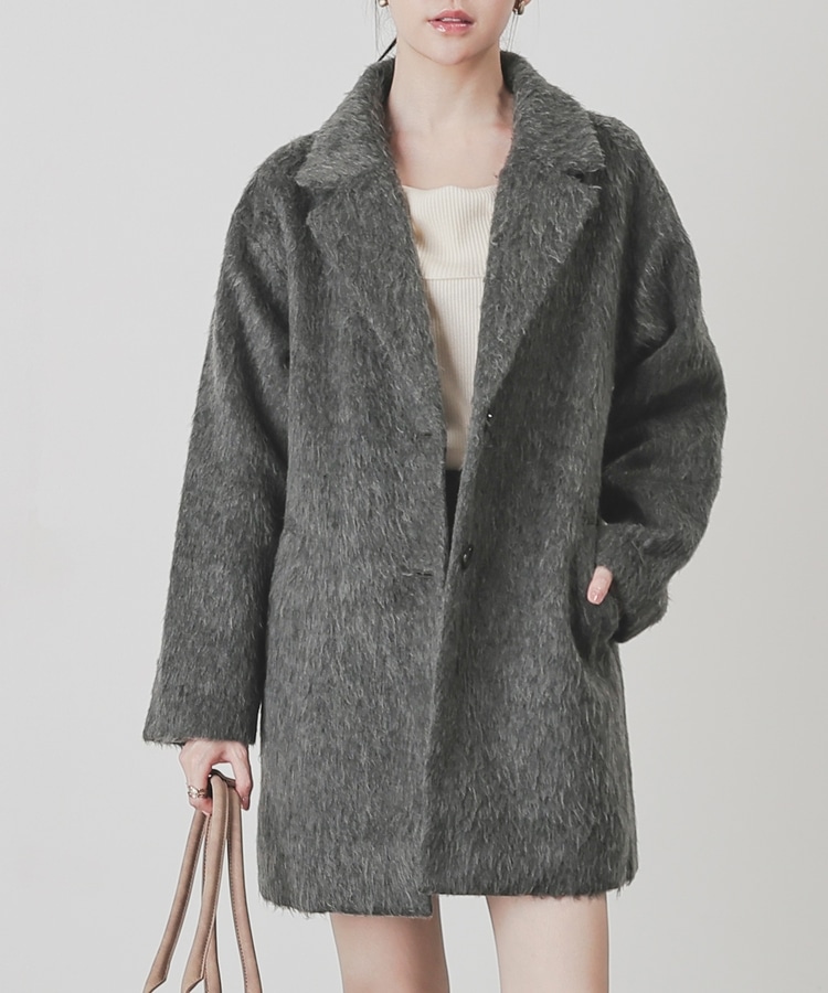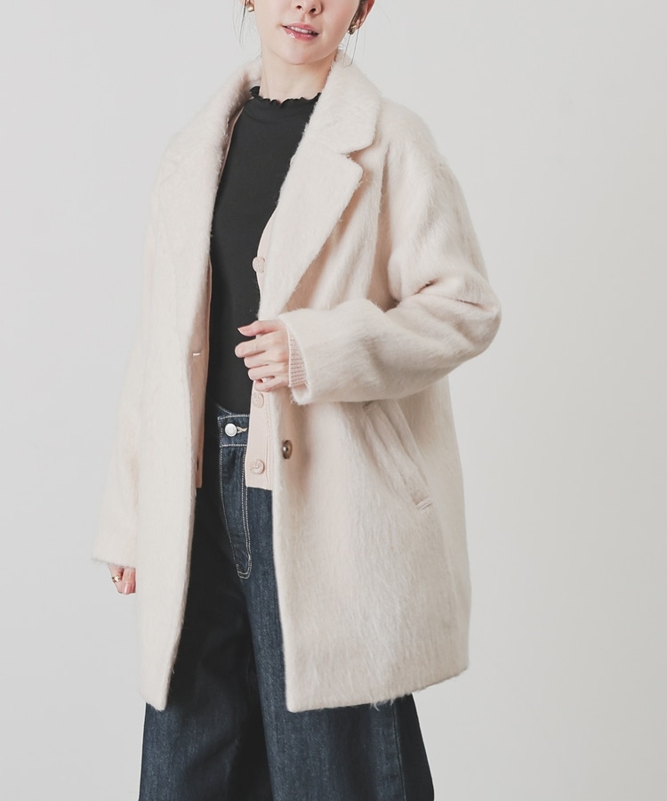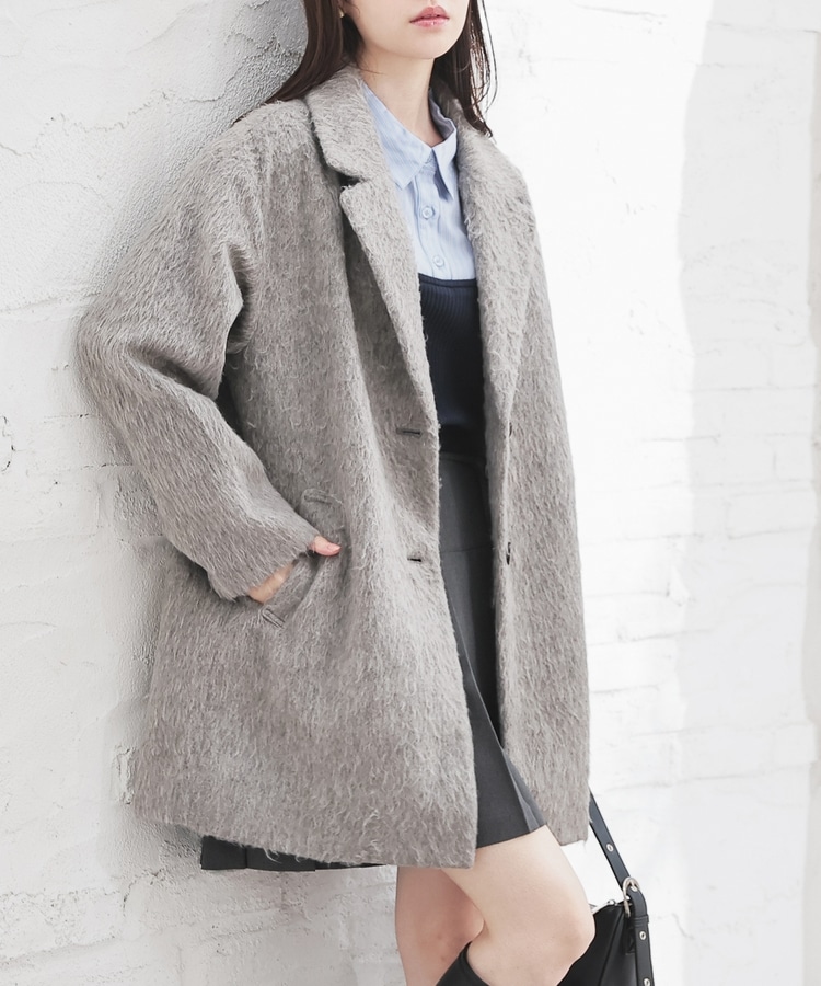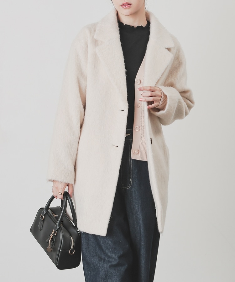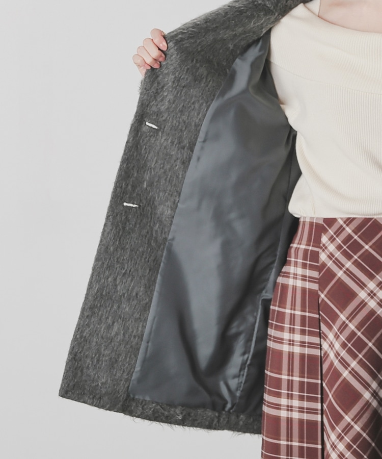 すっきりと開いたテーラードカラーにシングルボタンのベーシックなデザイン。
