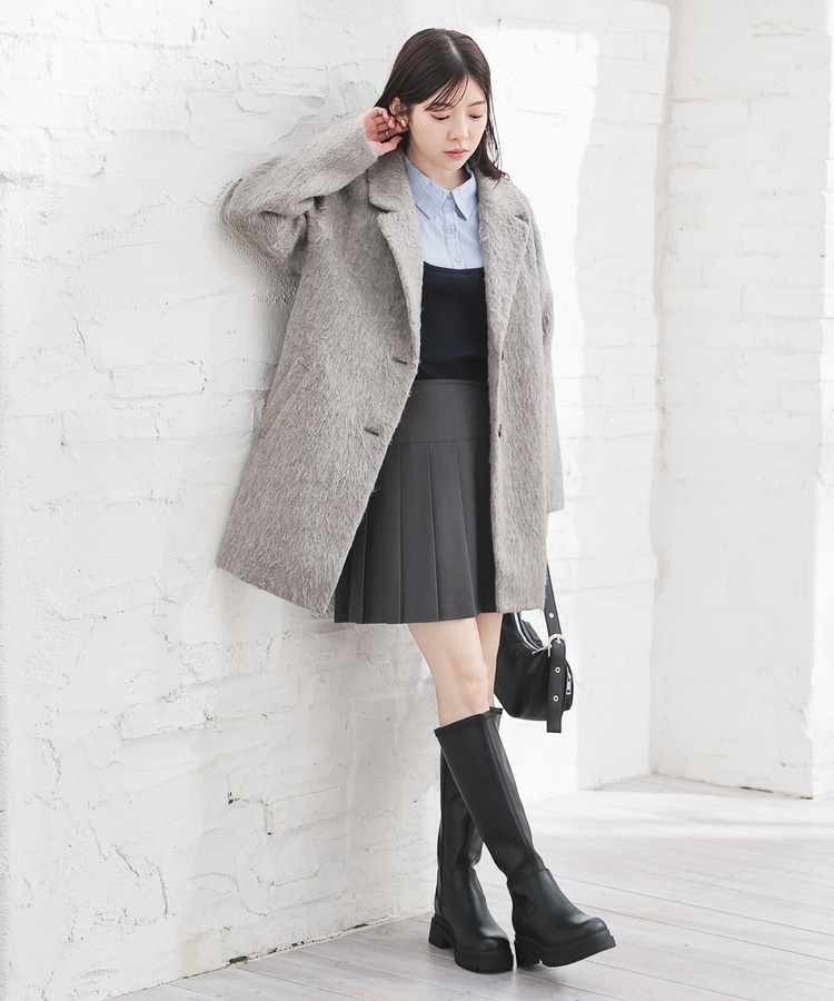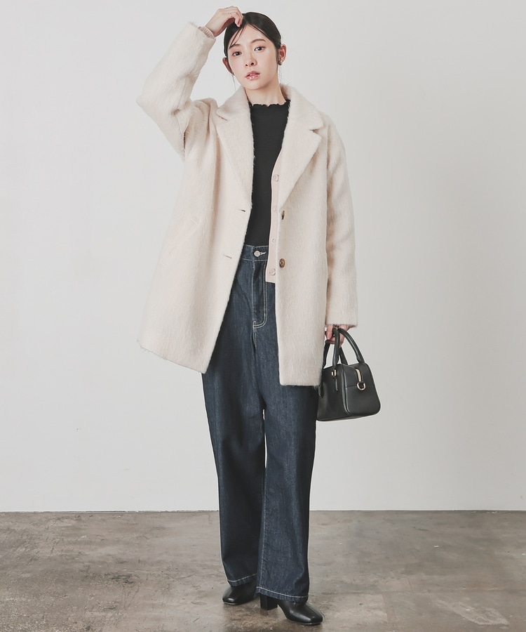 ゆったりめの幅とヒップまですっぽり隠れる丈感で体型もカバー。