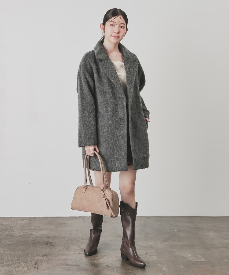 環境に優しい再生ポリエステルを使用した、軽くて暖かなシャギー素材。