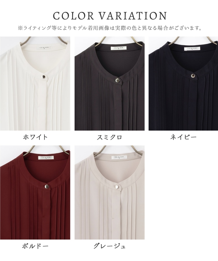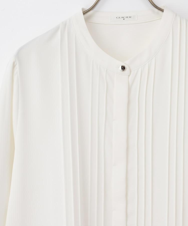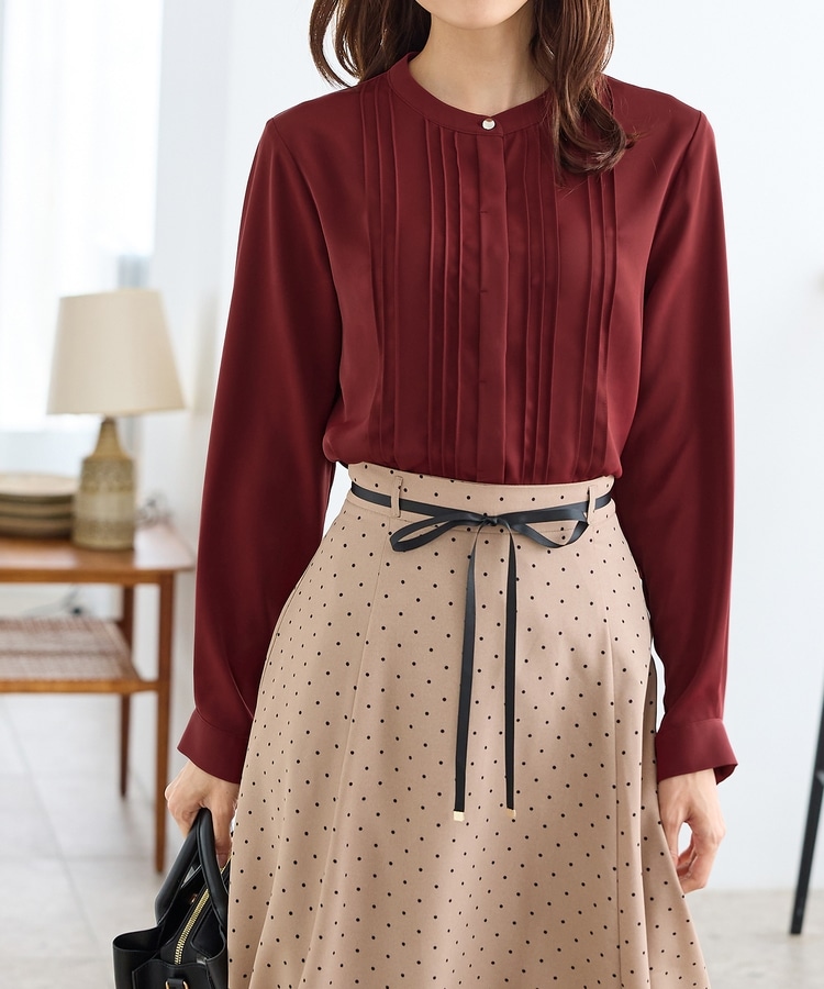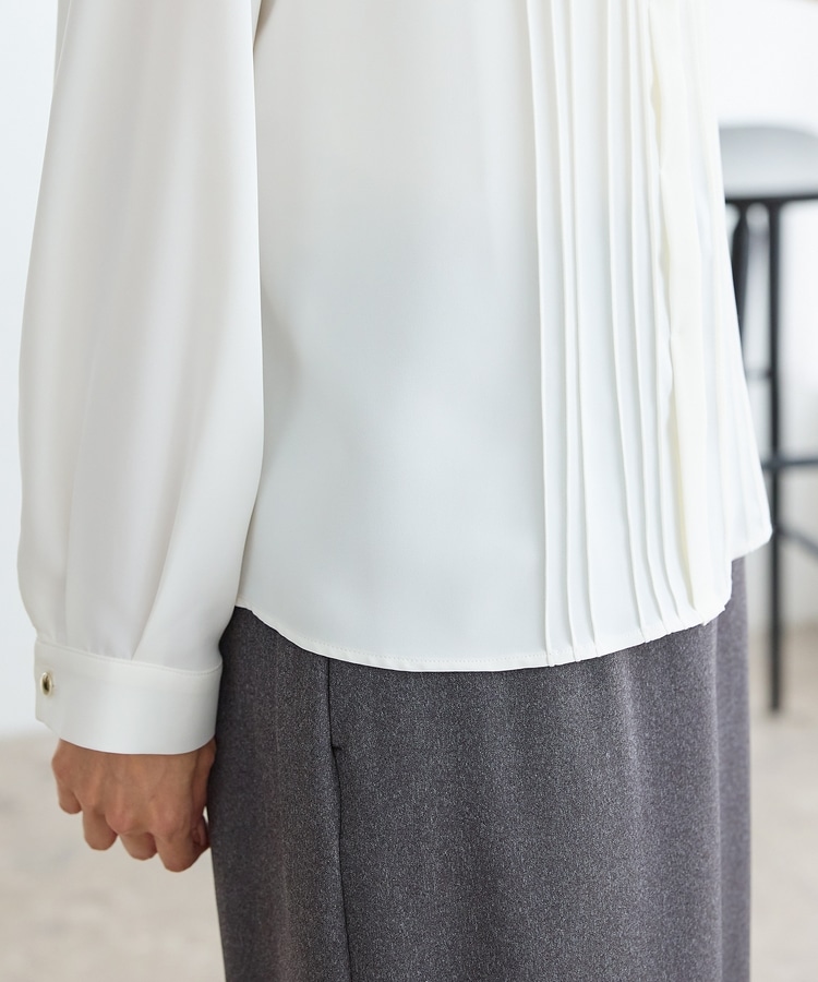 フロントのピンタックがフェミニンで華やかなデザイン。