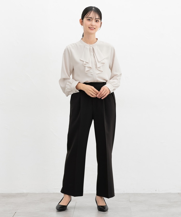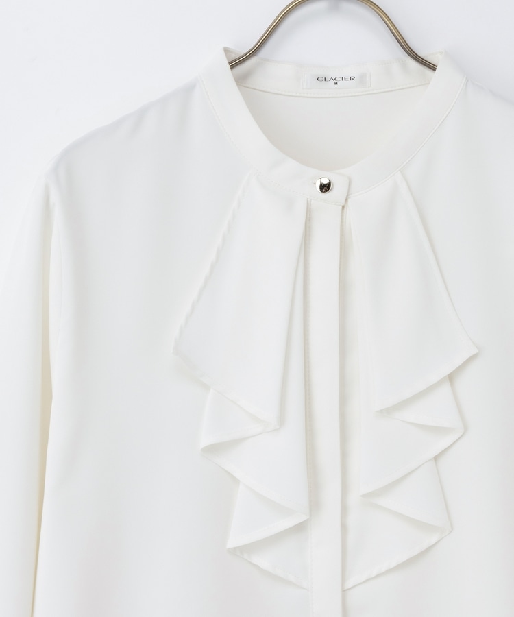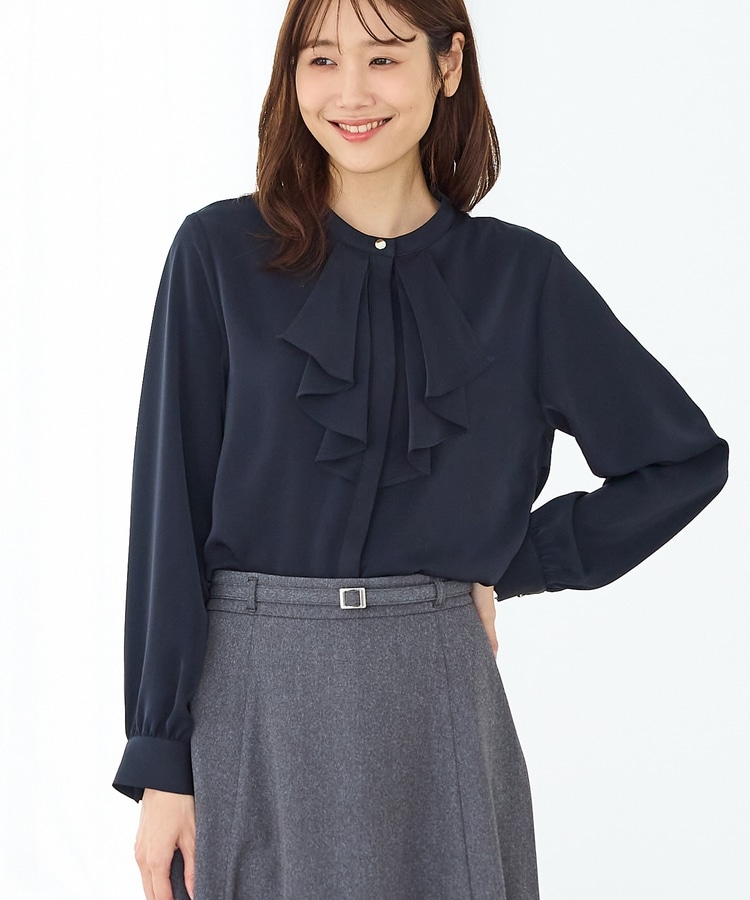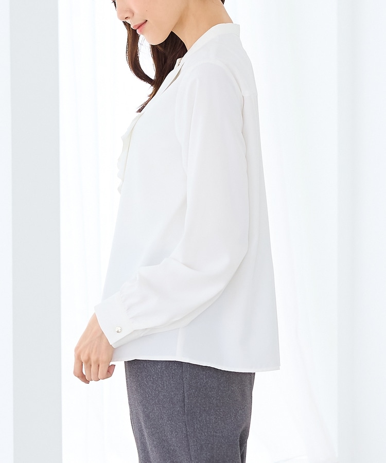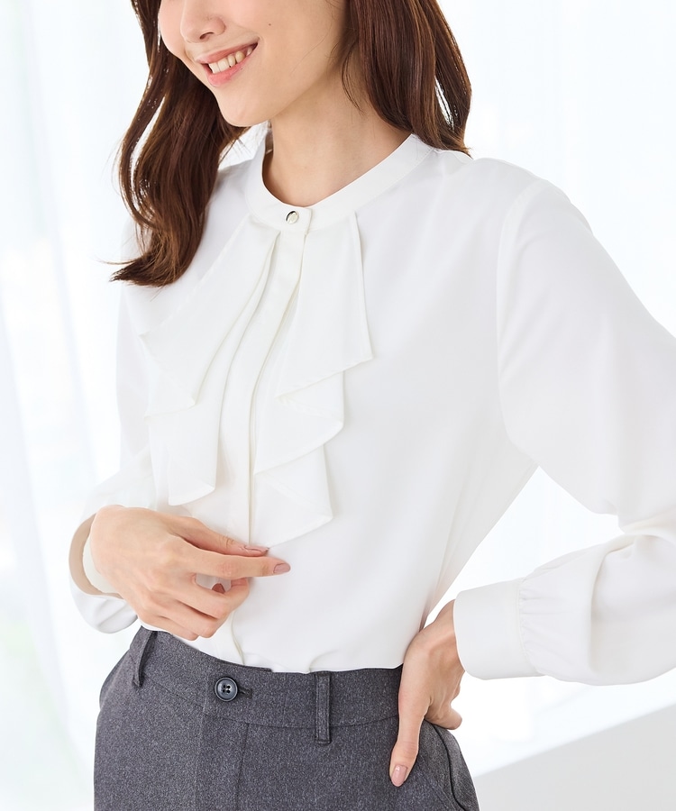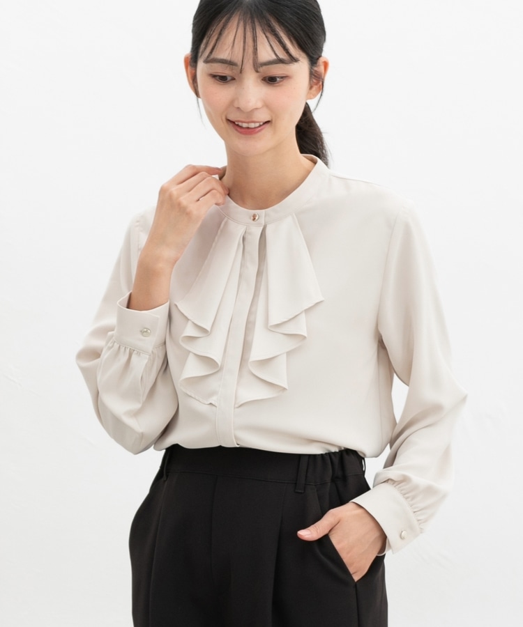 ボタンを隠した比翼仕立てで大人な上品さをプラス。