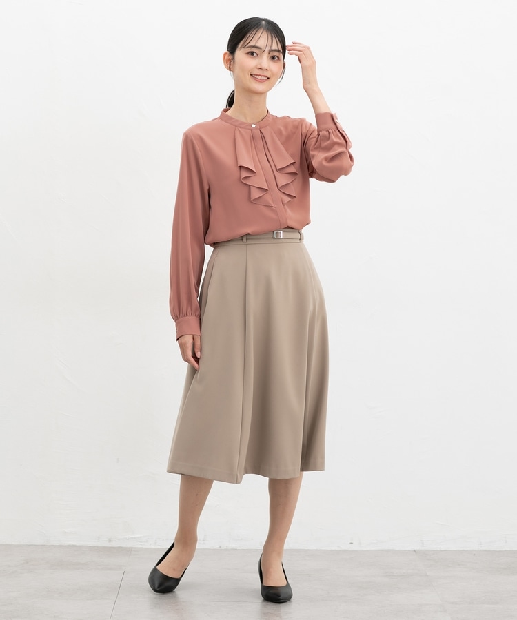 体のラインを拾わないベーシックなシルエットで、幅広い年代の方に着ていただきやすいデザイン。