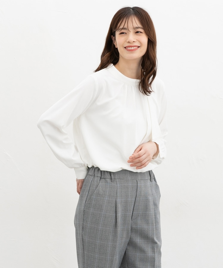 体のラインを拾いにくいゆったりめシルエットとボリューム袖。