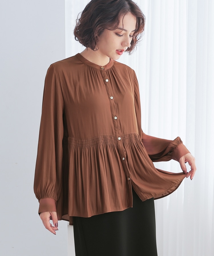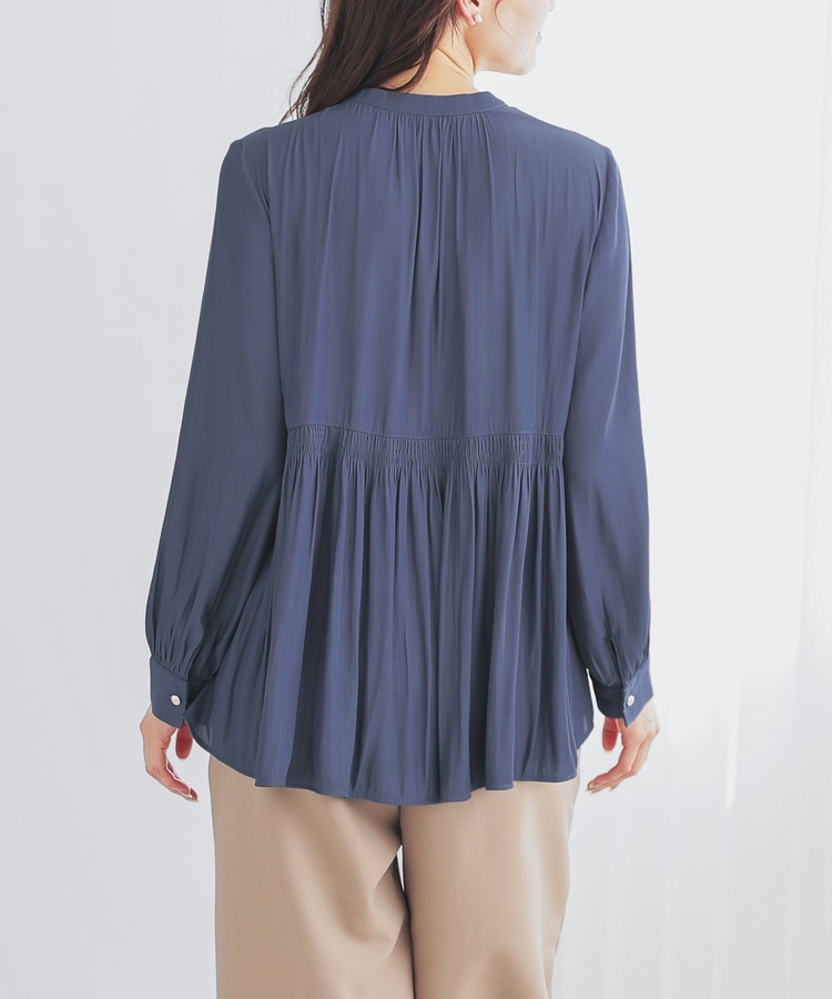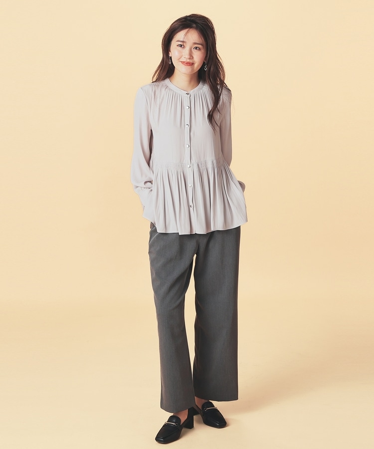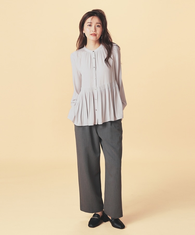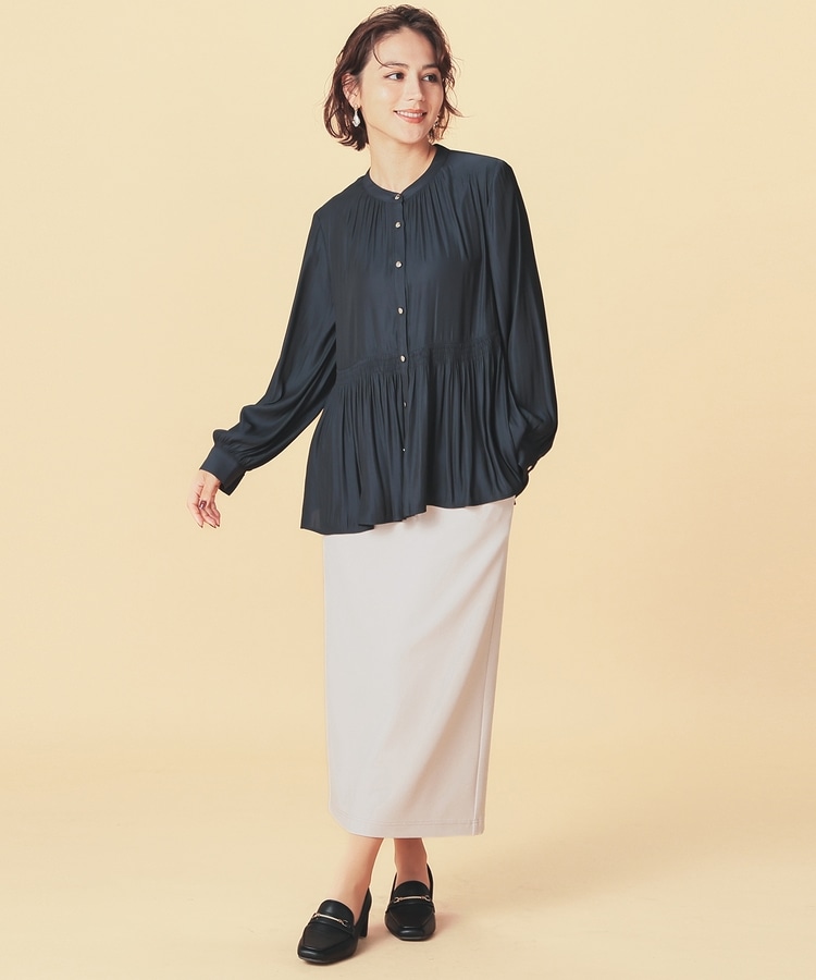 ブラウスとしてはもちろん、ボタンを開けてラフに羽織るのも◎