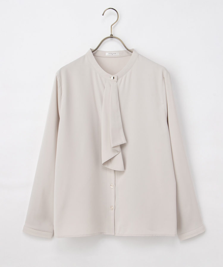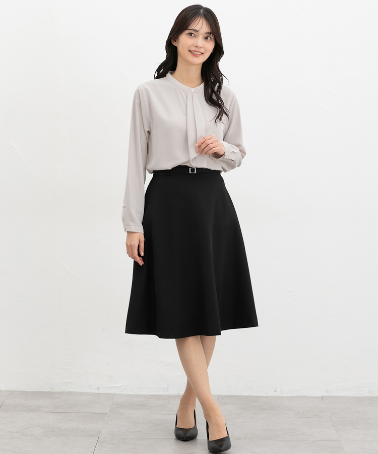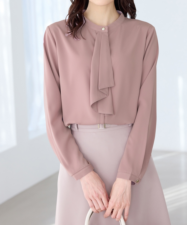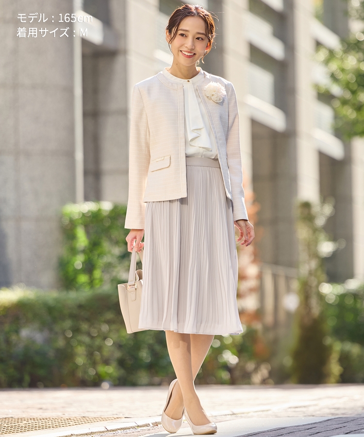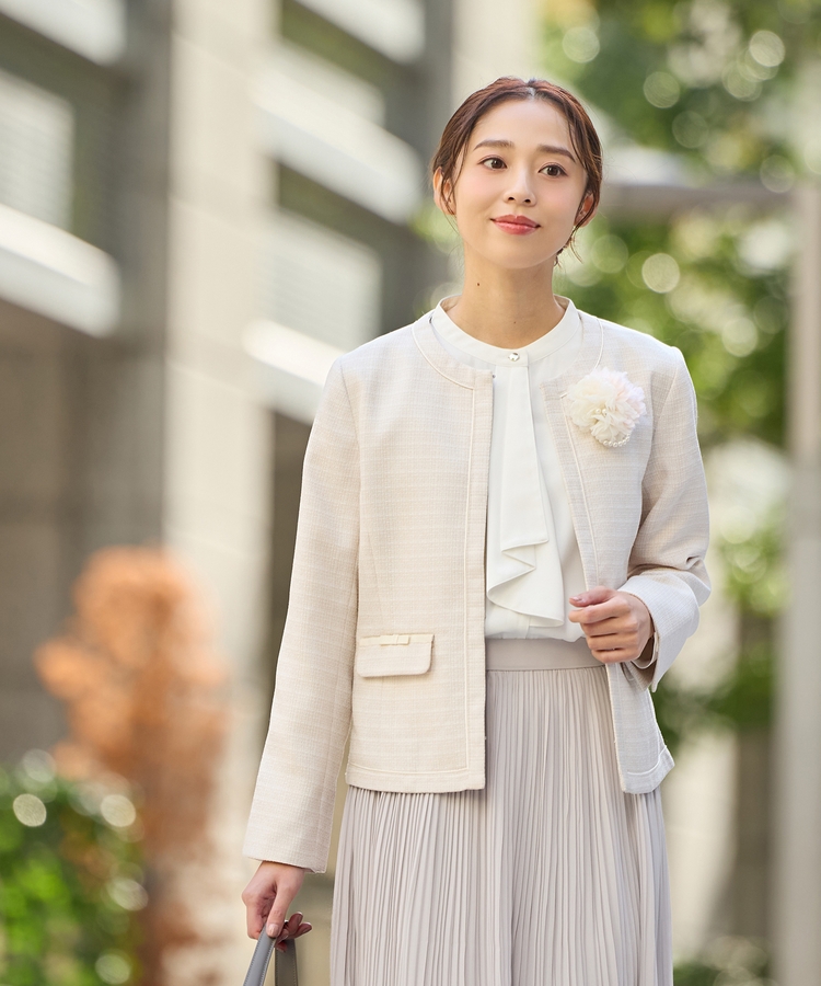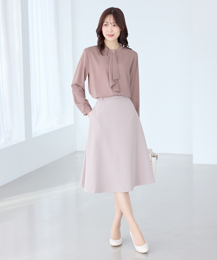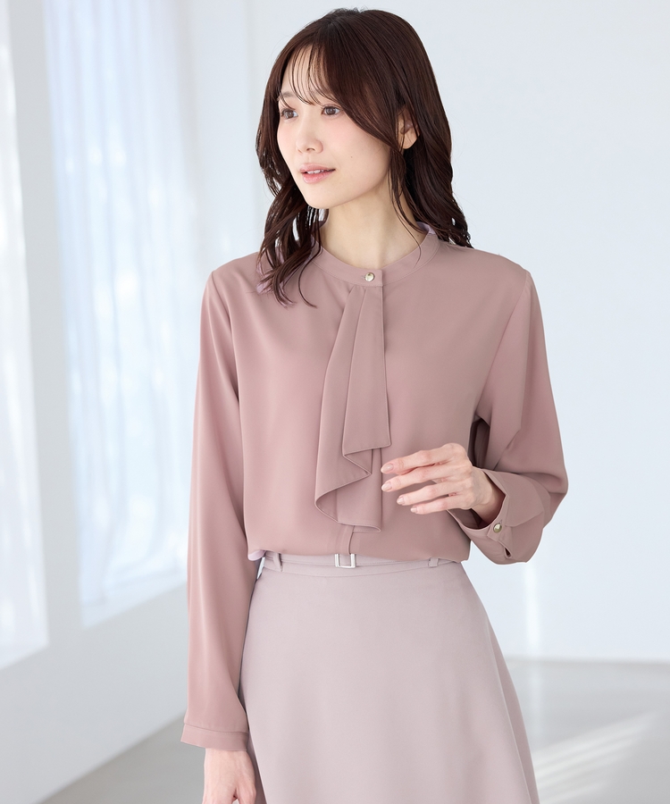 ジャケットにも合うサイズ感で通勤や入学式・卒業式などのセレモニーシーンにも使え、テーパードパンツやフレアスカートと合わせたきれいめスタイルに大活躍。