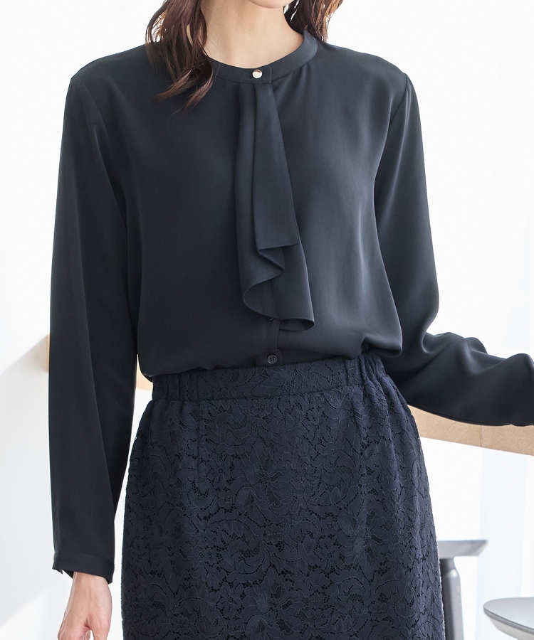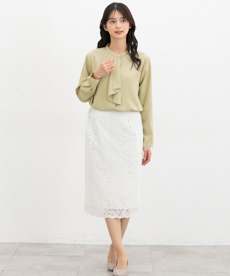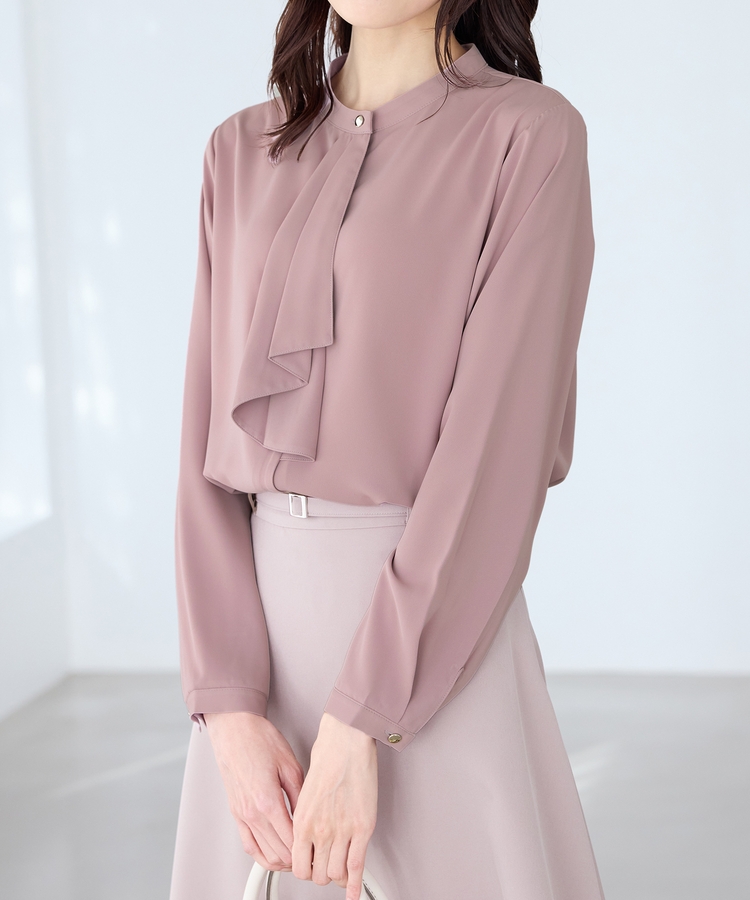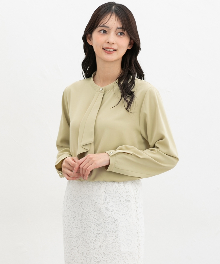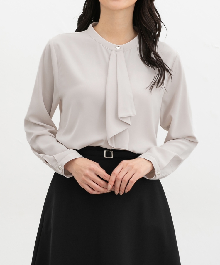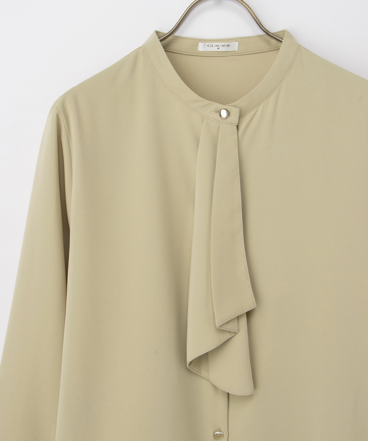 ジャケットにも合うサイズ感で通勤や入学式・卒業式などのセレモニーシーンにも使え、テーパードパンツやフレアスカートと合わせたきれいめスタイルに大活躍。