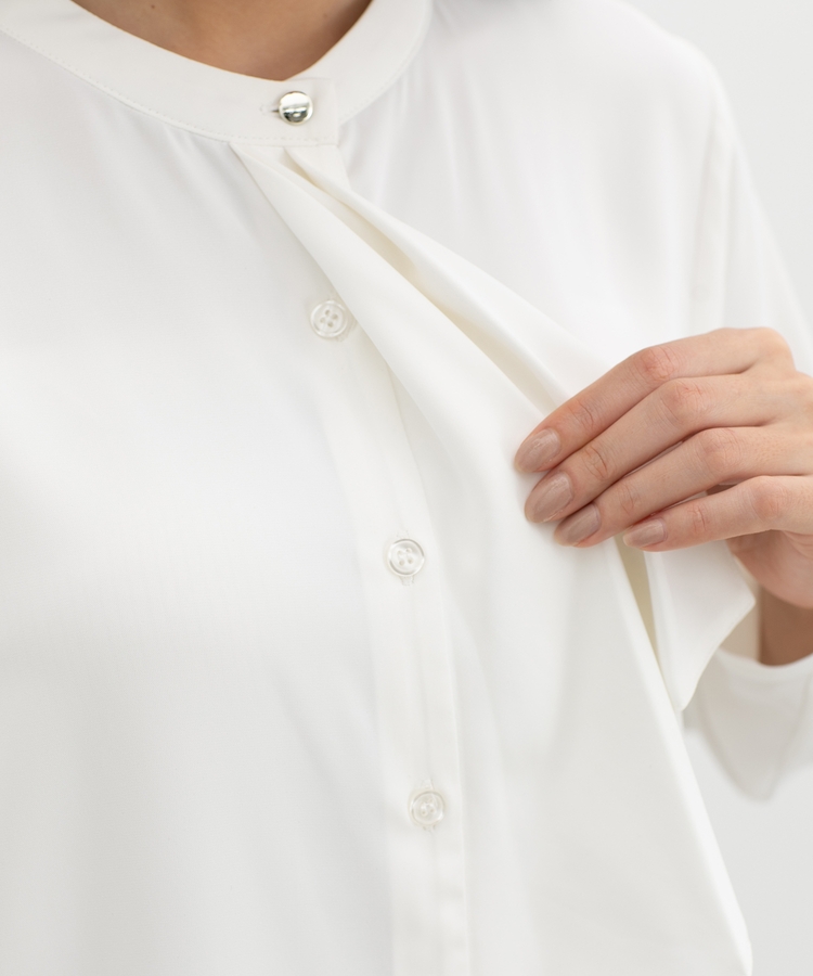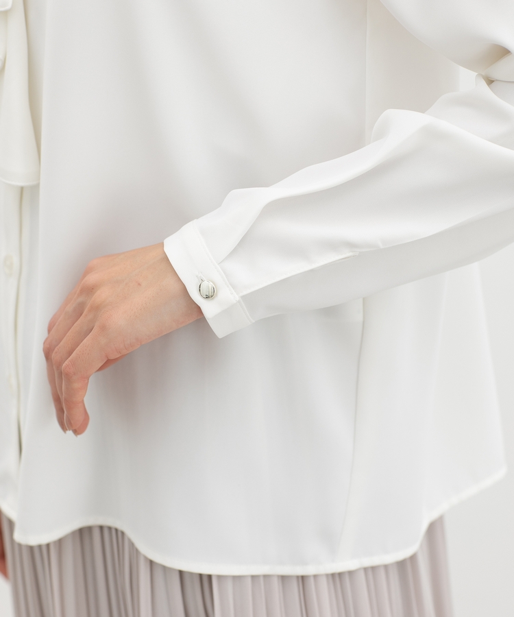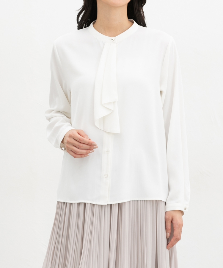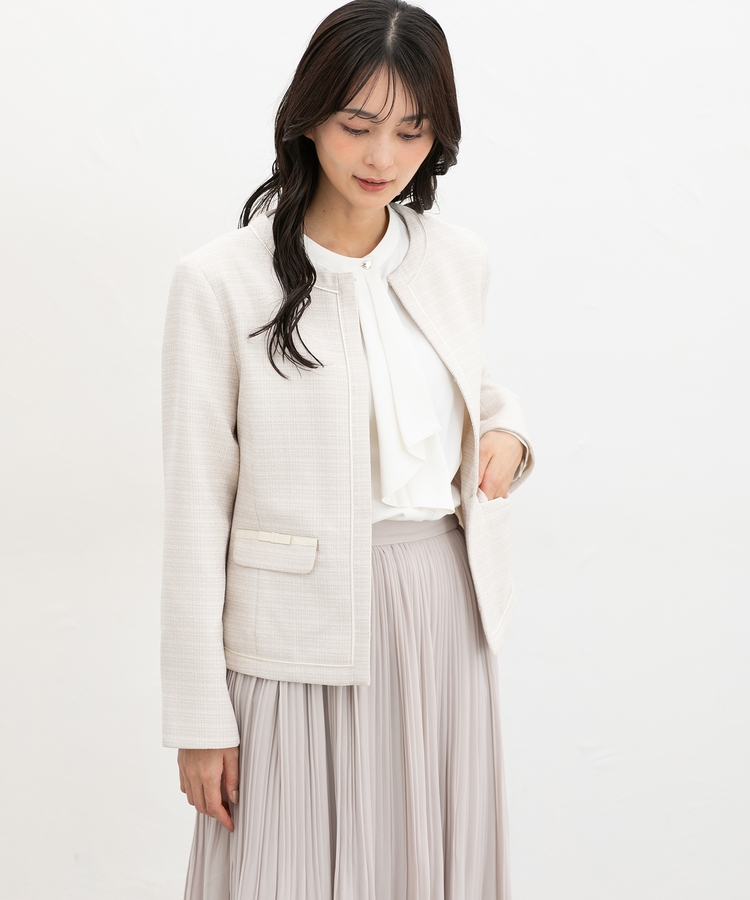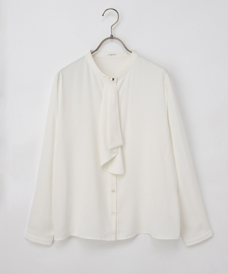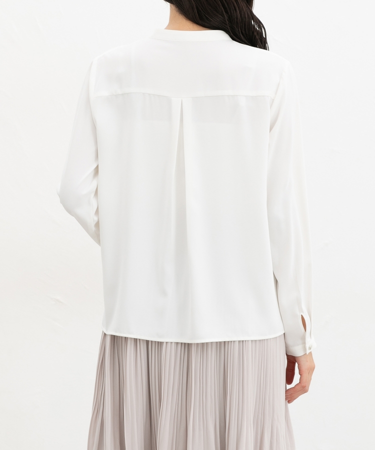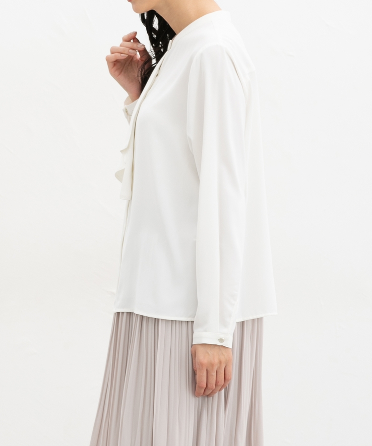 ジャケットにも合うサイズ感で通勤や入学式・卒業式などのセレモニーシーンにも使え、テーパードパンツやフレアスカートと合わせたきれいめスタイルに大活躍。