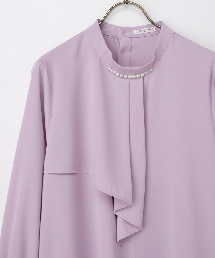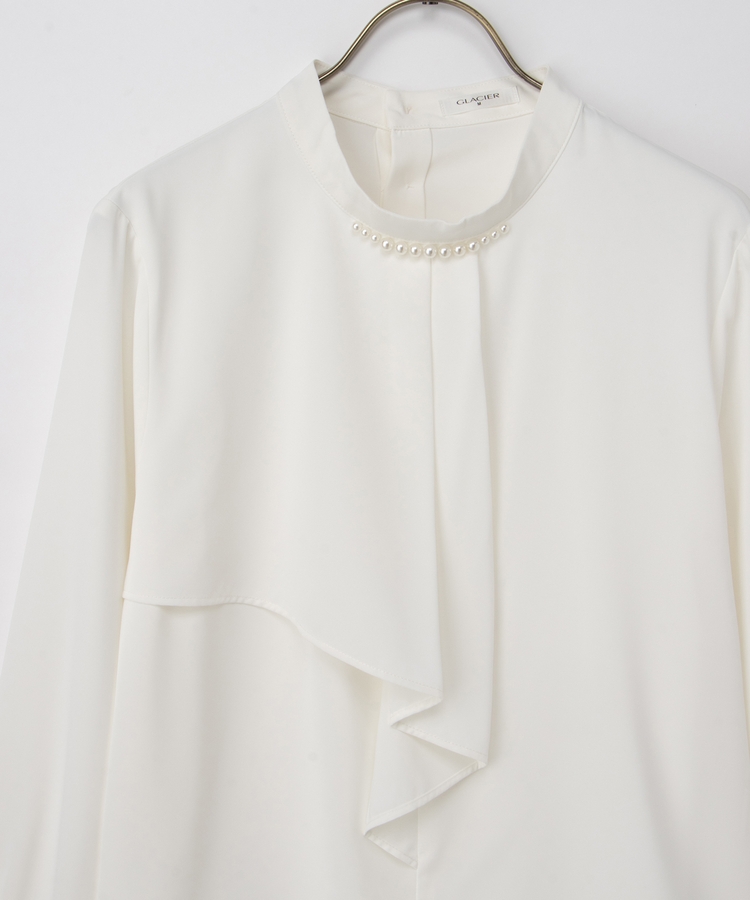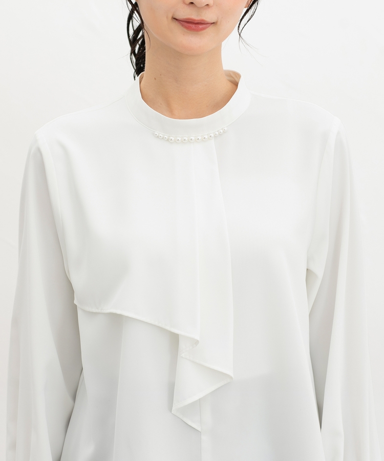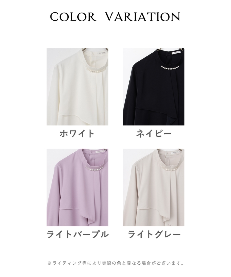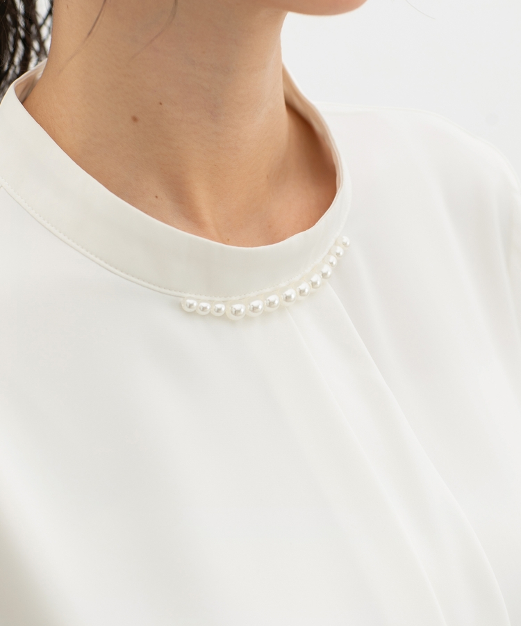 衿元のパール風ビーズがさりげなく華やかで上品な印象をプラス。