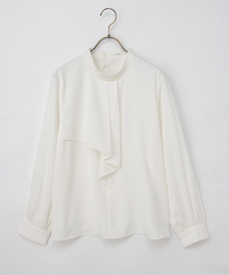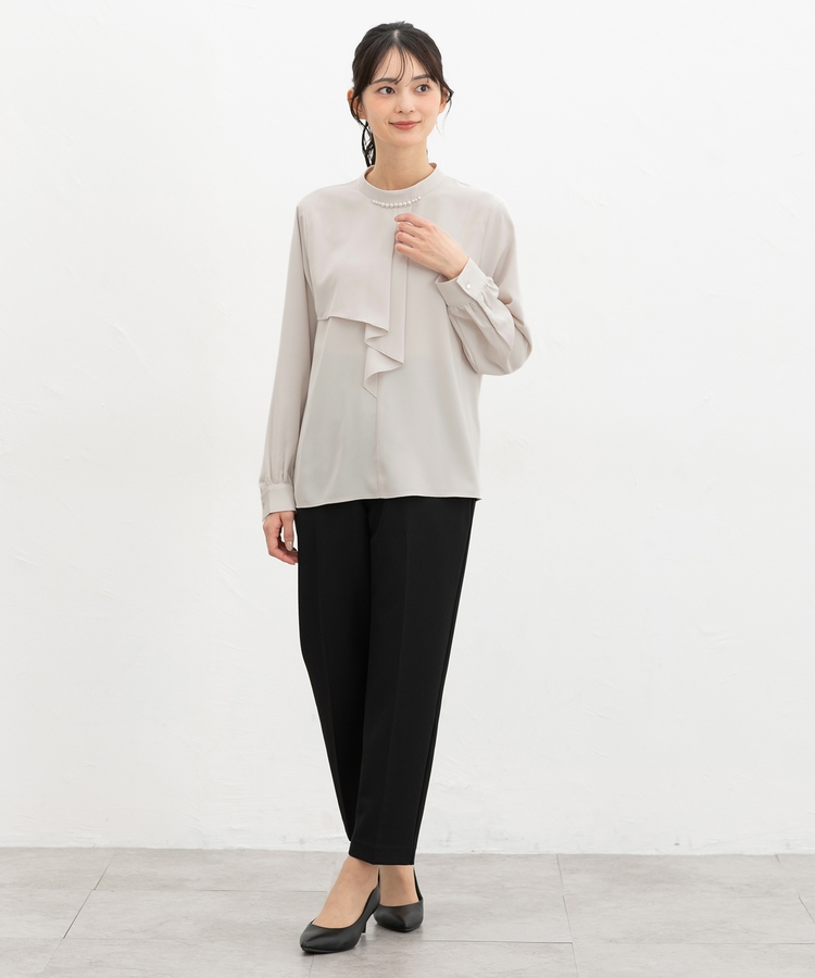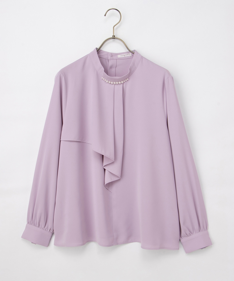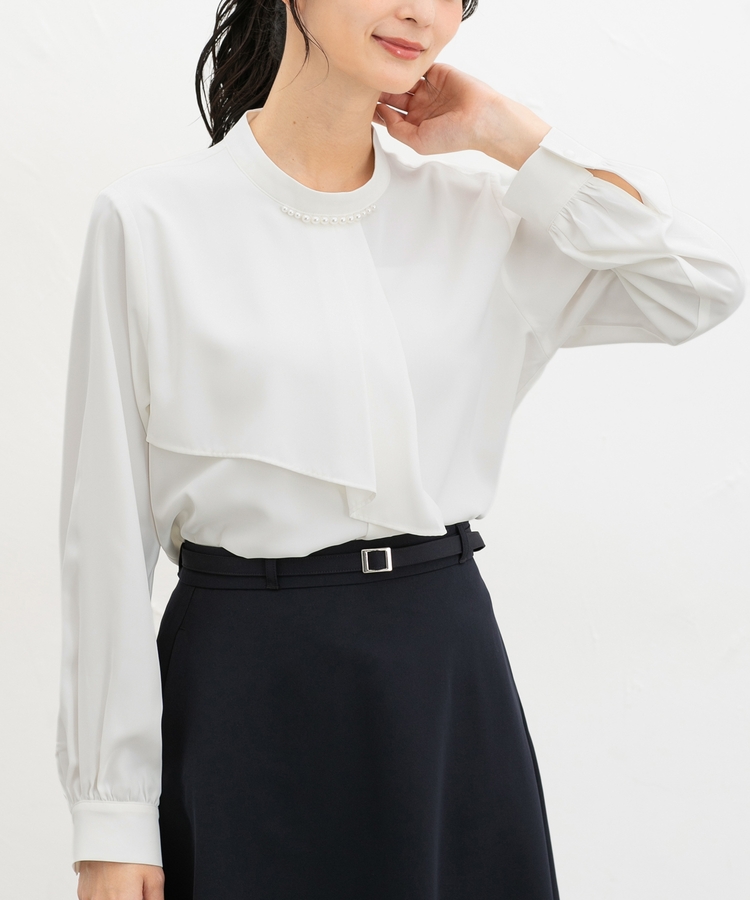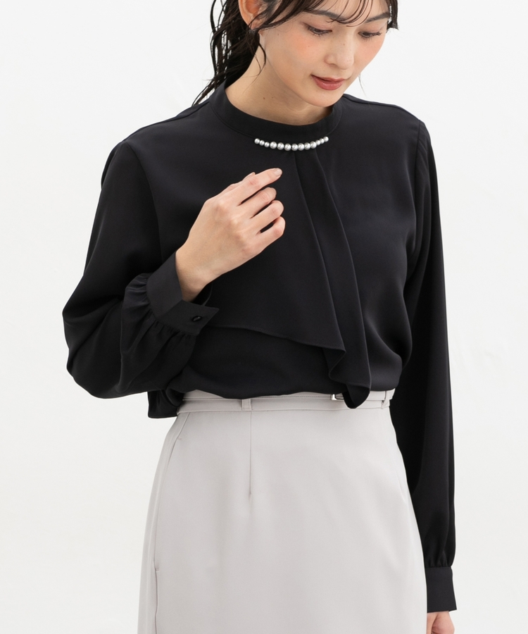 衿元のパール風ビーズがさりげなく華やかで上品な印象をプラス。