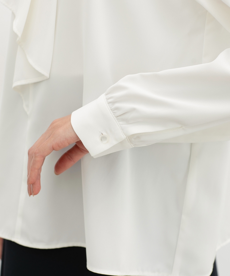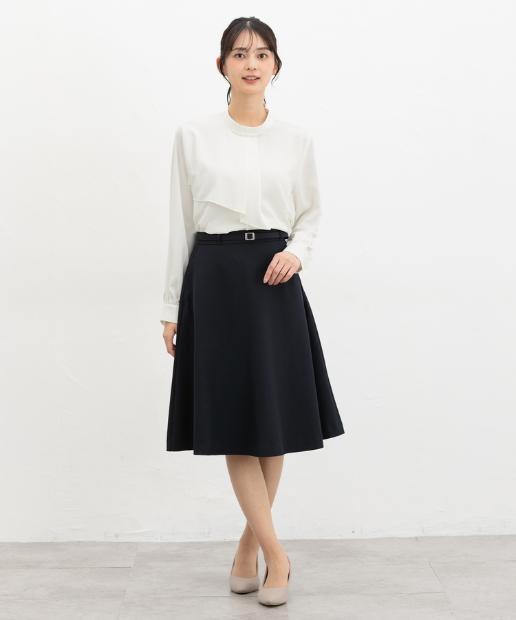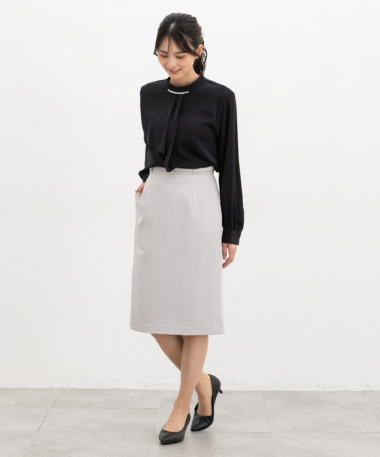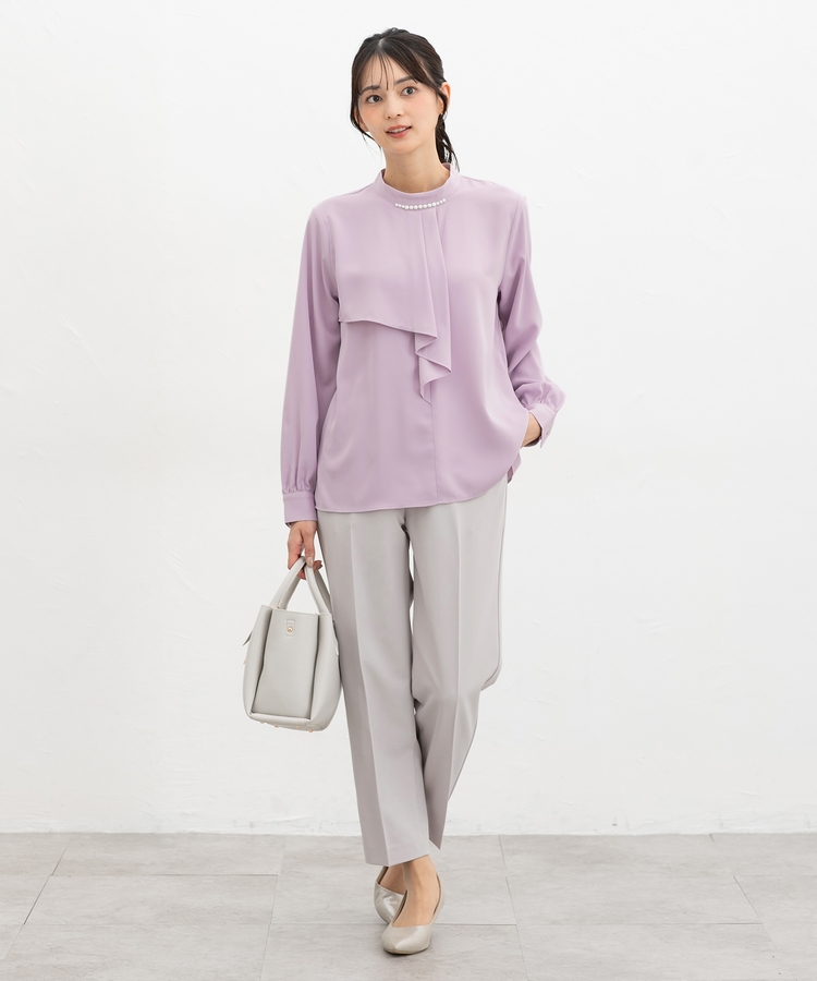 ジャケットにも合うサイズ感で通勤や入学式・卒業式などのセレモニーシーンにも使え、テーパードパンツやフレアスカートと合わせたきれいめスタイルに大活躍。