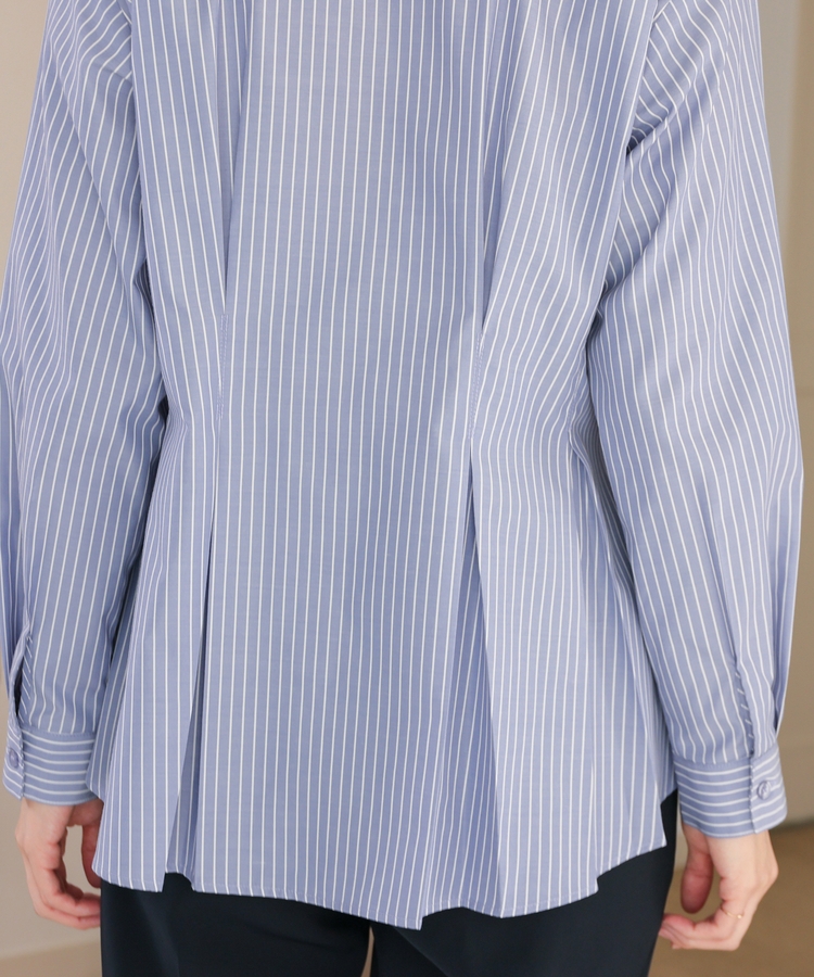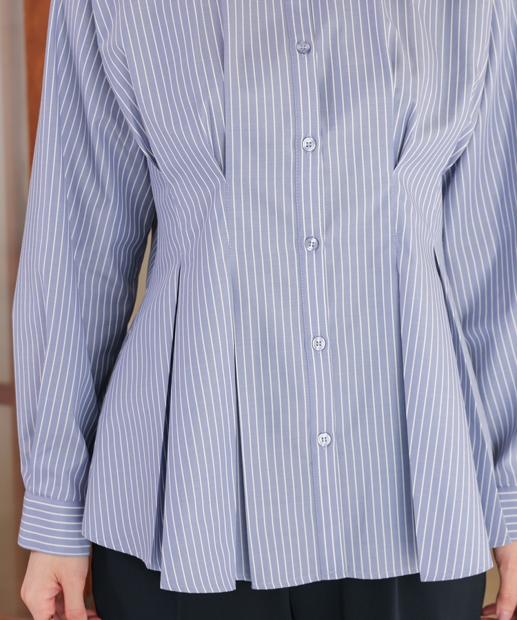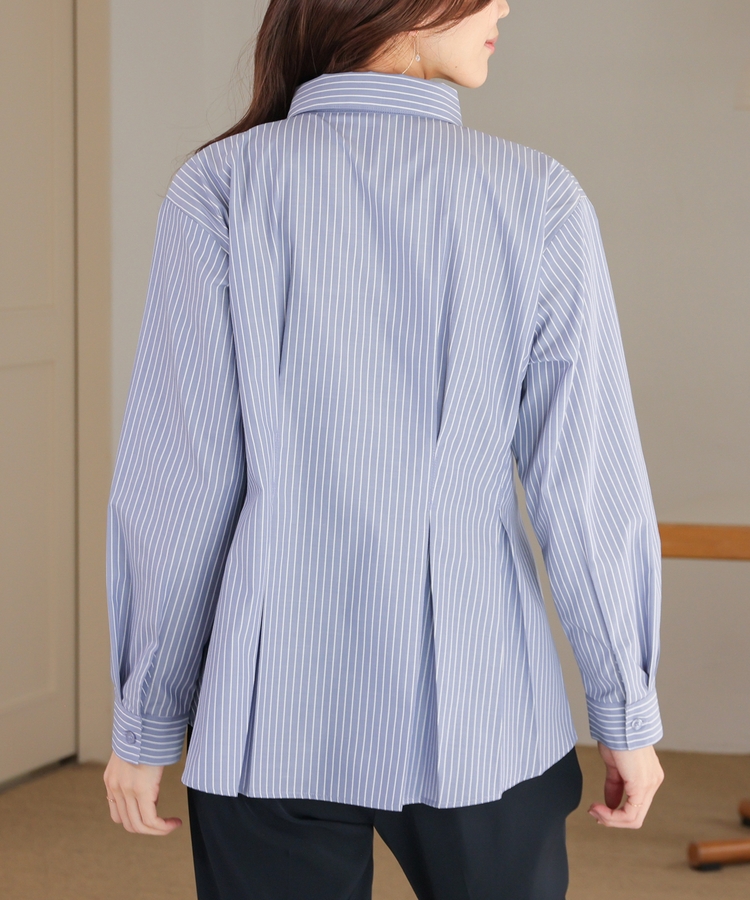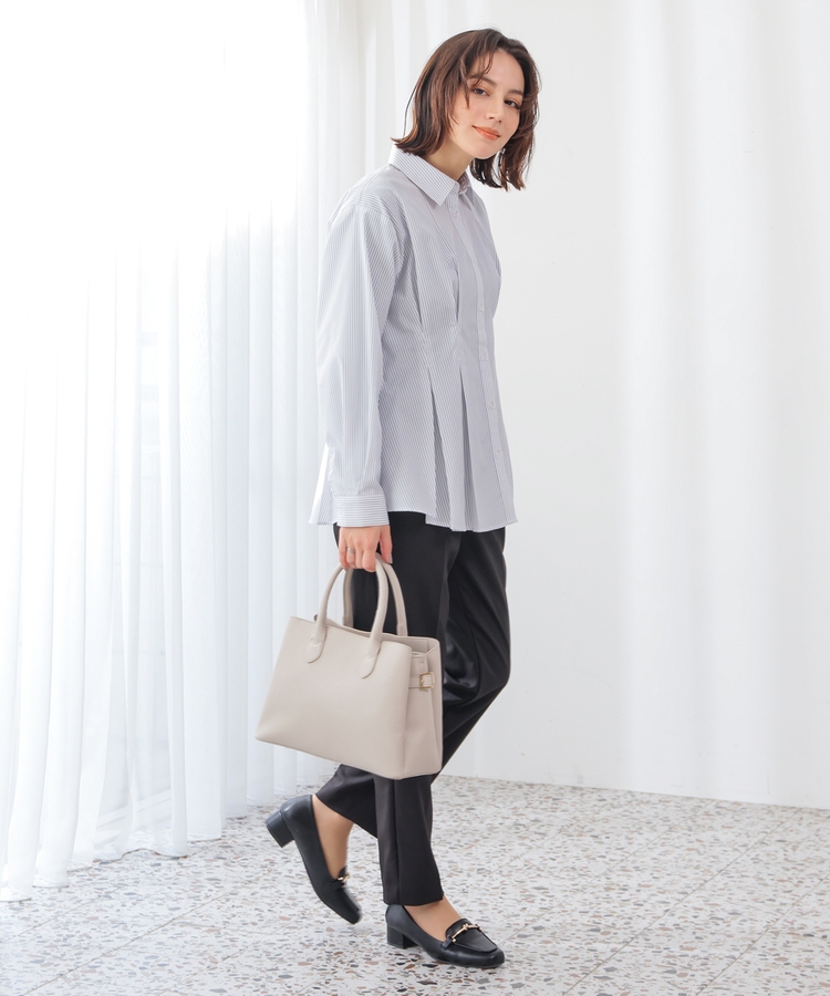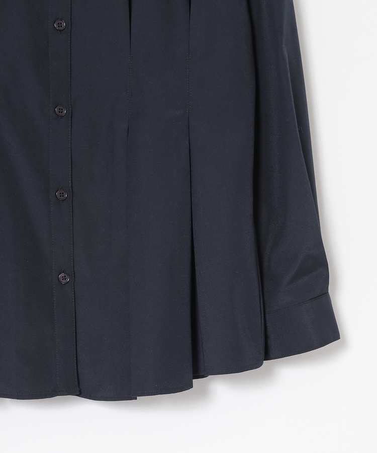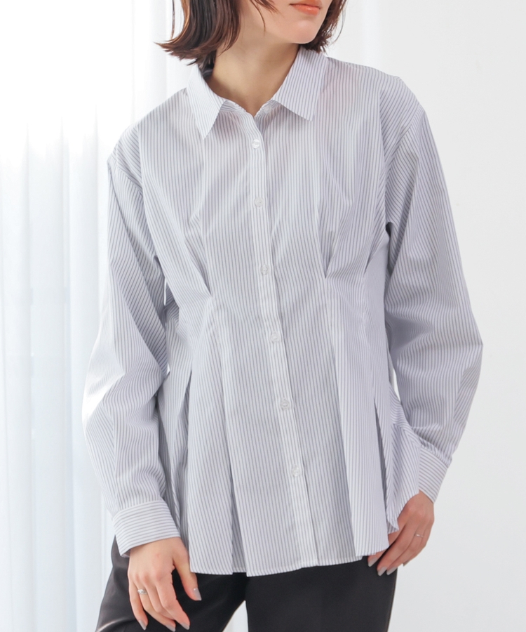 ベーシックなレギュラーカラーに、タックでウエストをほんのりシェイプさせた、メリハリのあるフェミニンシルエット。
