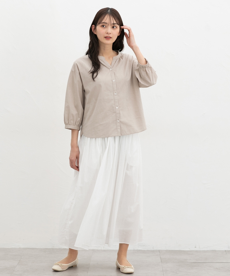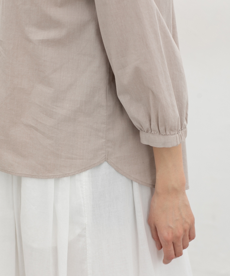 ふんわり袖の袖口後ろにゴム入りで袖丈が調節しやすく、たくし上げてパフっとさせると大人可愛い印象に。