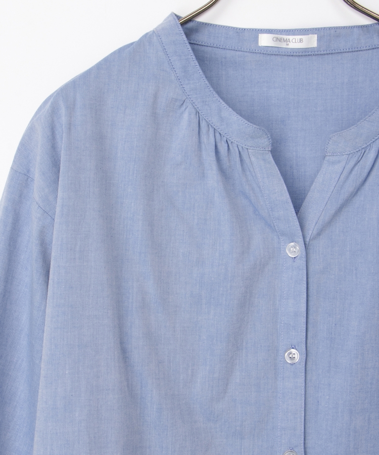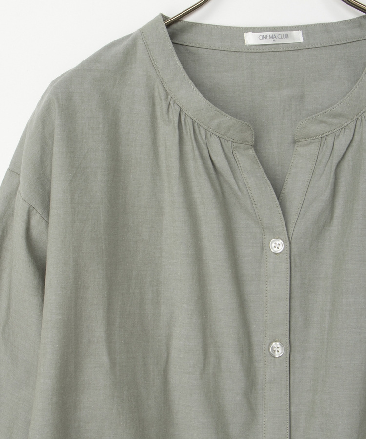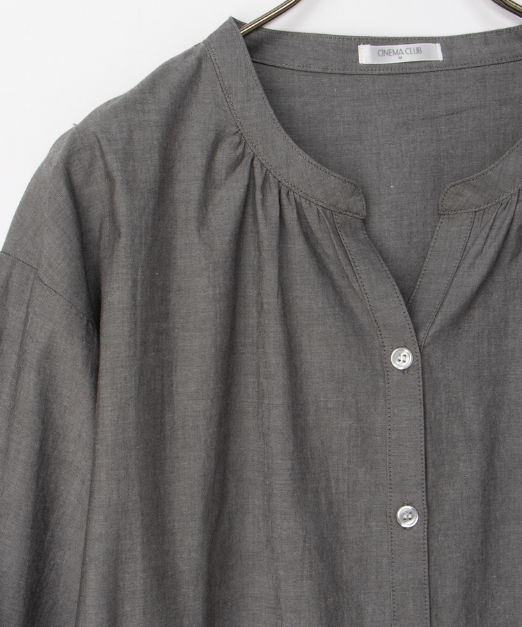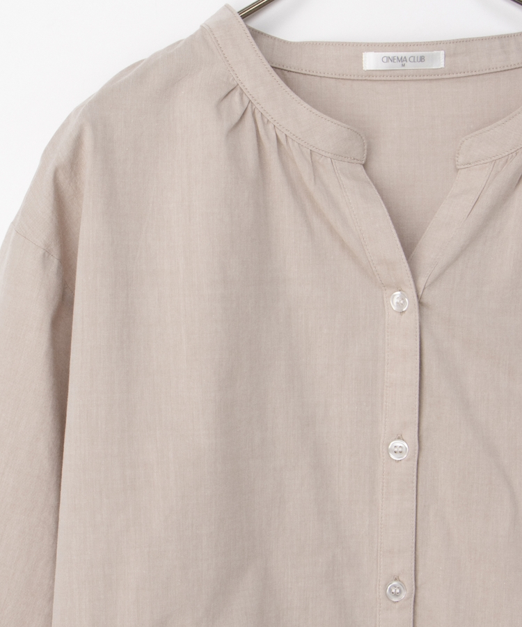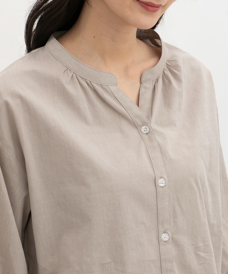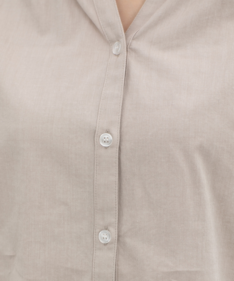 首元がすっきり綺麗に見えるスキッパータイプのマオカラーデザイン。