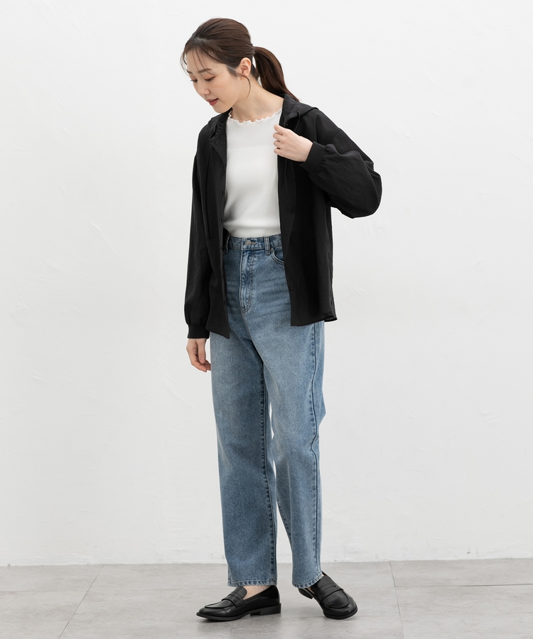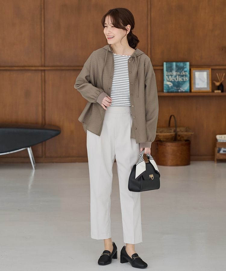どんなボトムスとも合い、タイトなスカートやパンツなどと合わせたメリハリのあるスタイリングやワンピースに羽織るのもおすすめ。