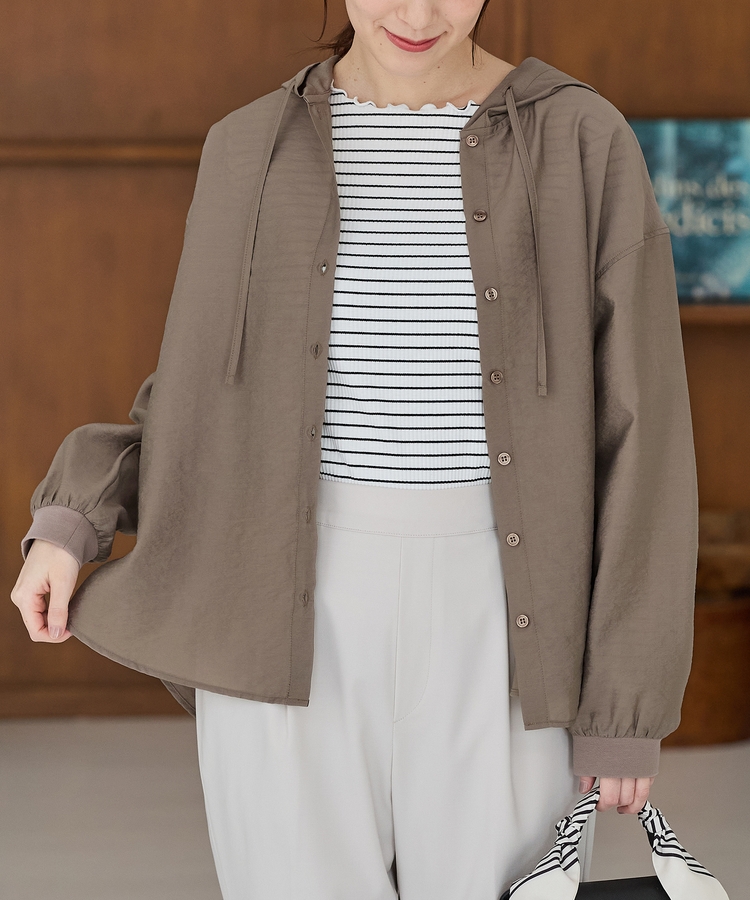 シアーフード付ブラウス