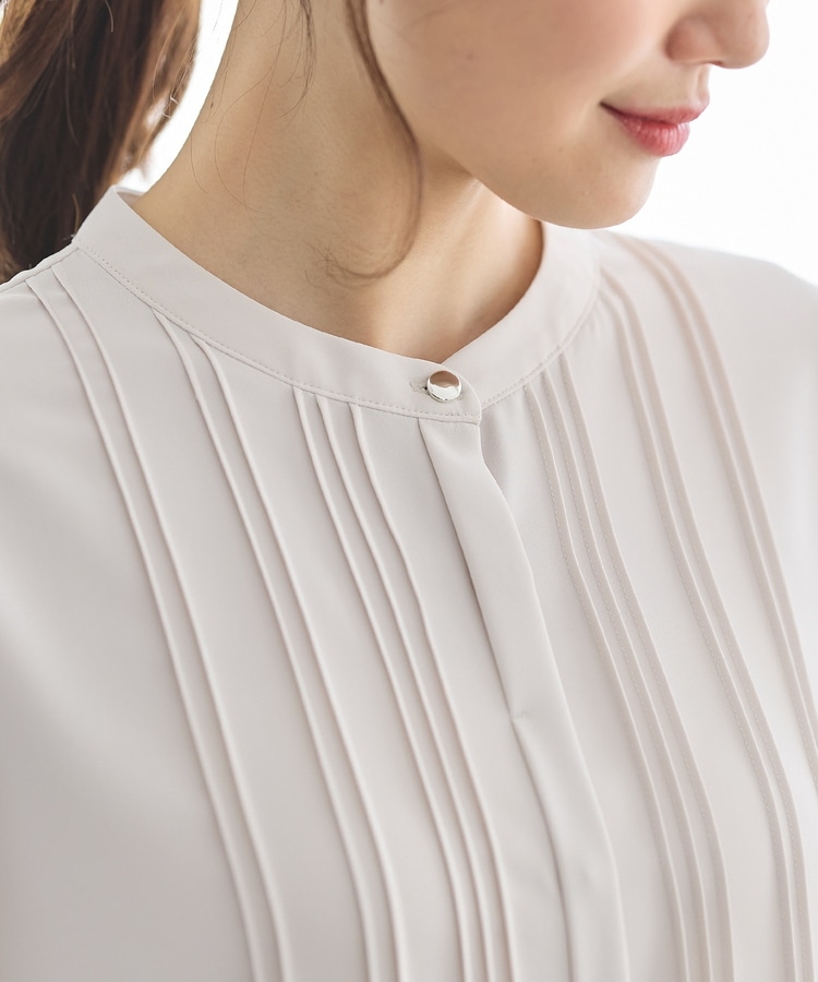 フロントのピンタックがフェミニンで華やかなデザイン。