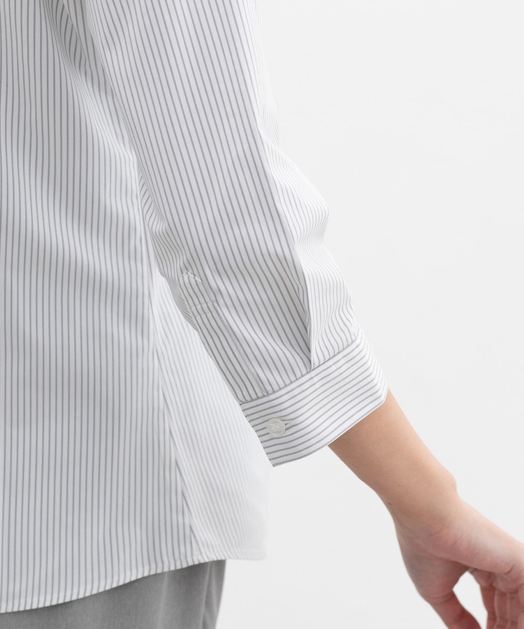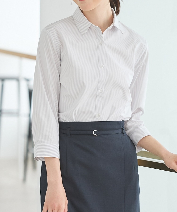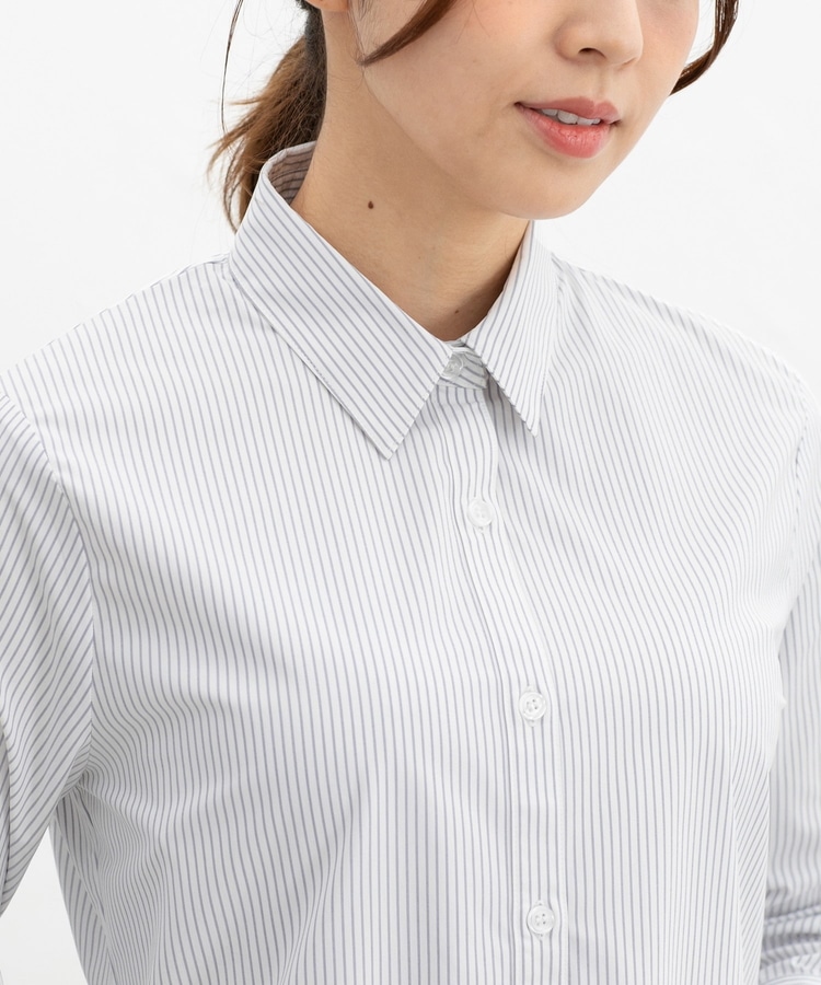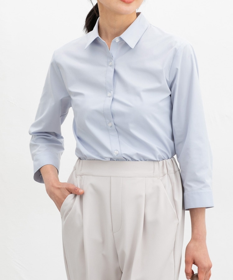 ベーシックなレギュラーカラーで、着回し力抜群のシンプルデザイン。