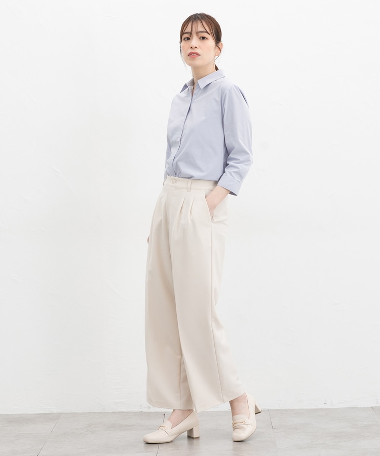 首元がすっきり見えるスキッパーで、着回し力抜群のシンプルデザイン。