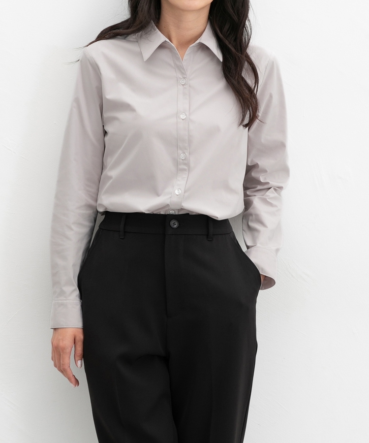 首元がすっきり見えるスキッパーで、着回し力抜群のベーシックなシンプルデザイン。