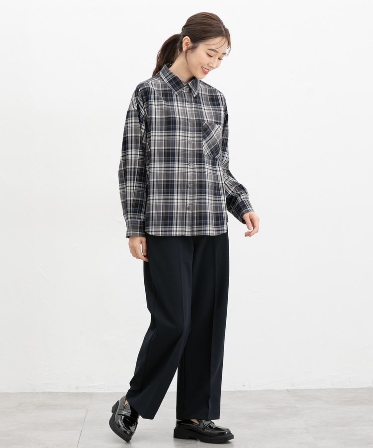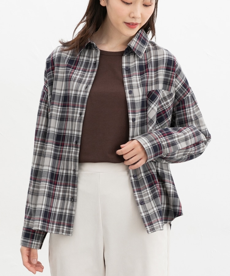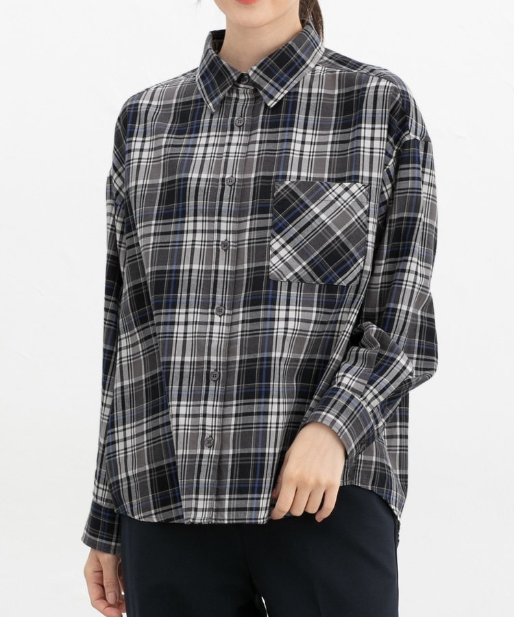 ベーシックなレギュラーカラーに季節感のあるチェック柄が大人可愛いデザイン。
