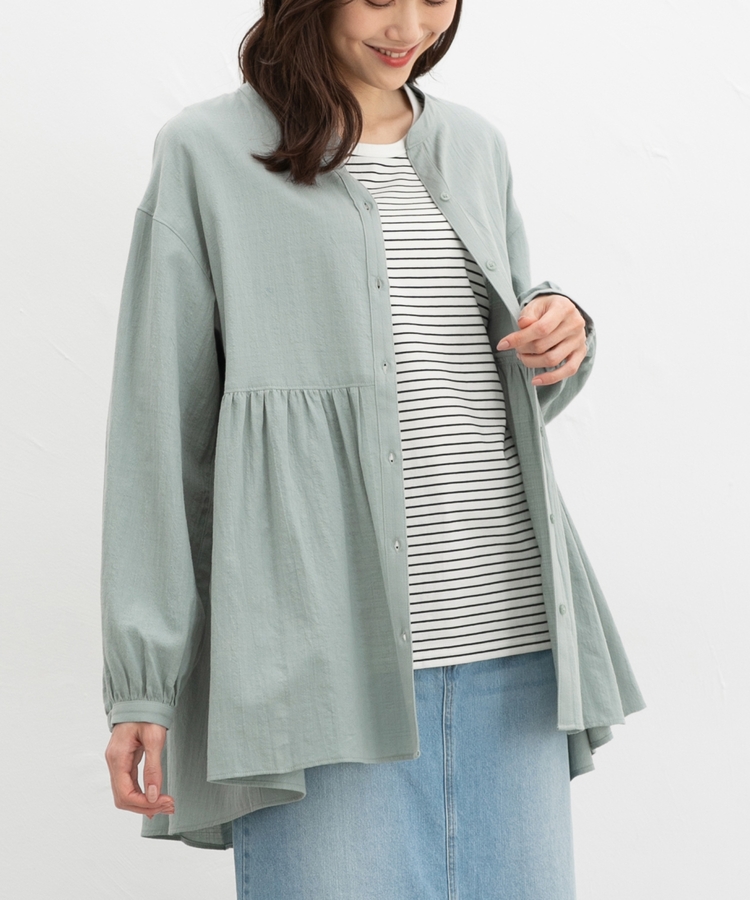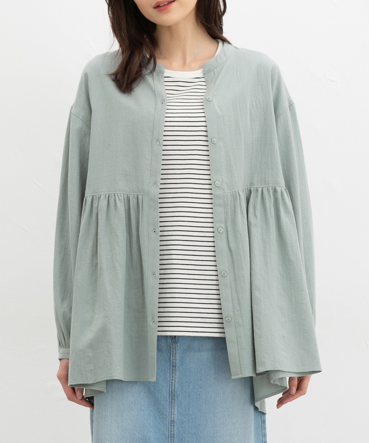 ロングワンピースやTシャツに、ボタンを開けて羽織るのも◎