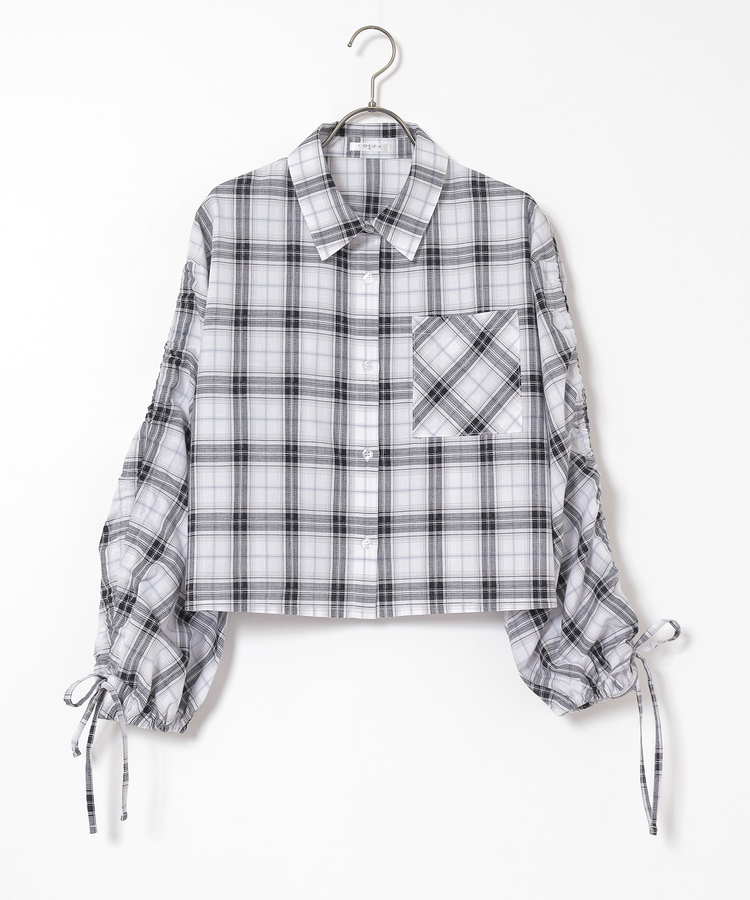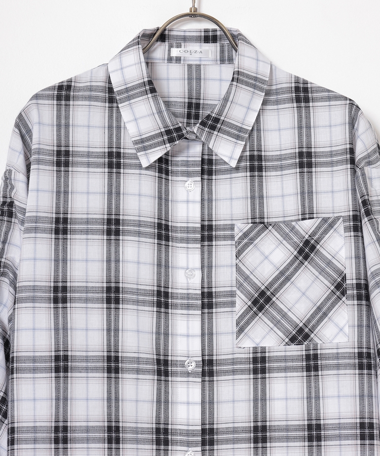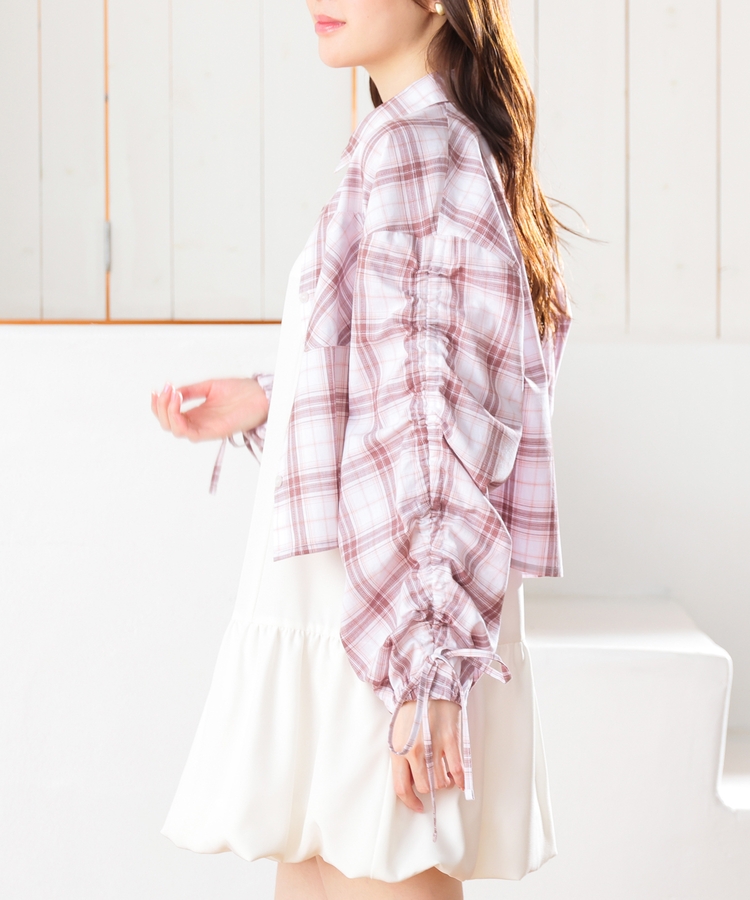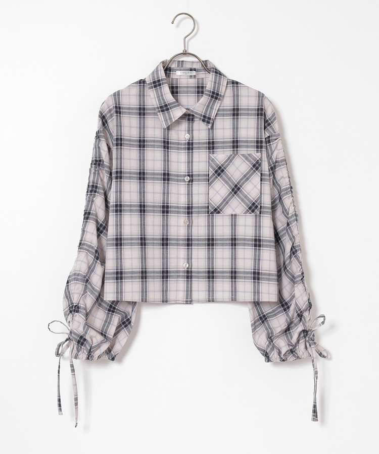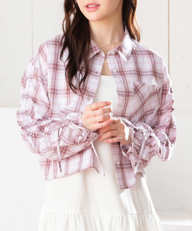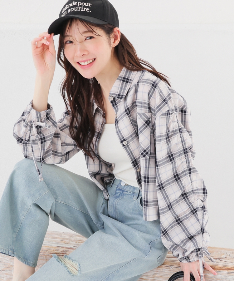 袖ドロストチェックシャツ