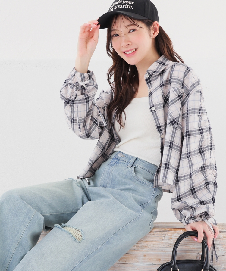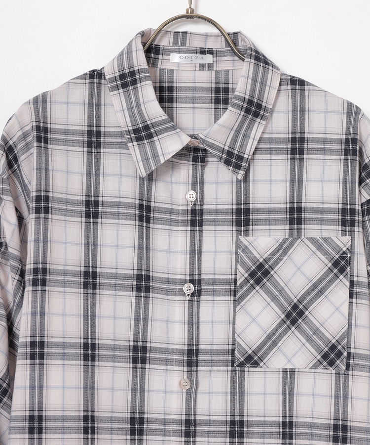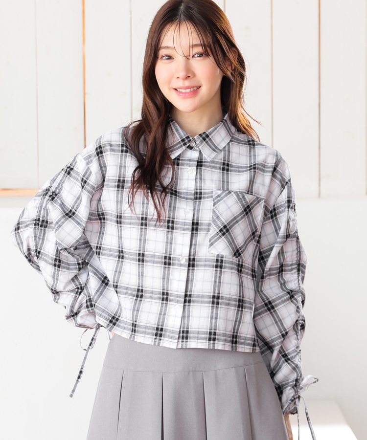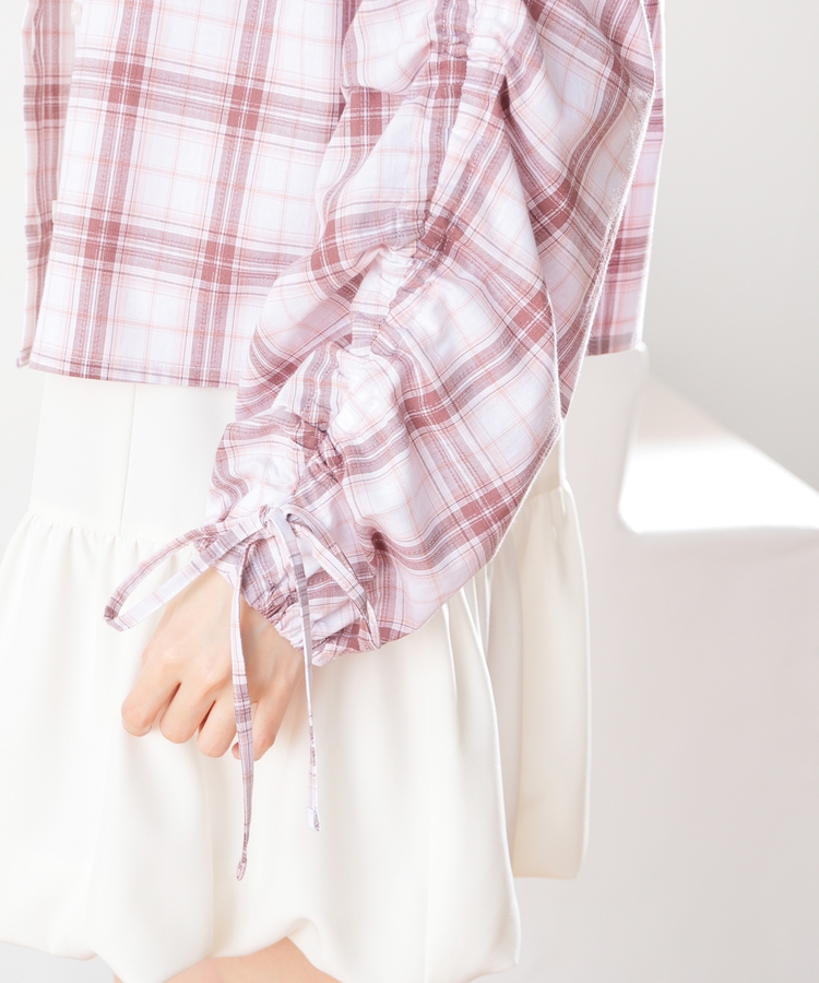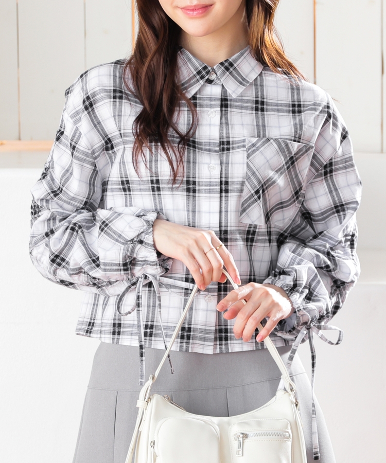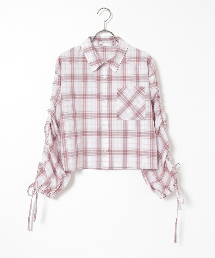袖ドロストチェックシャツ
