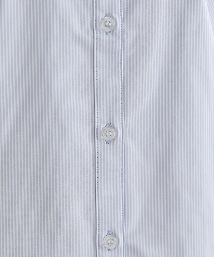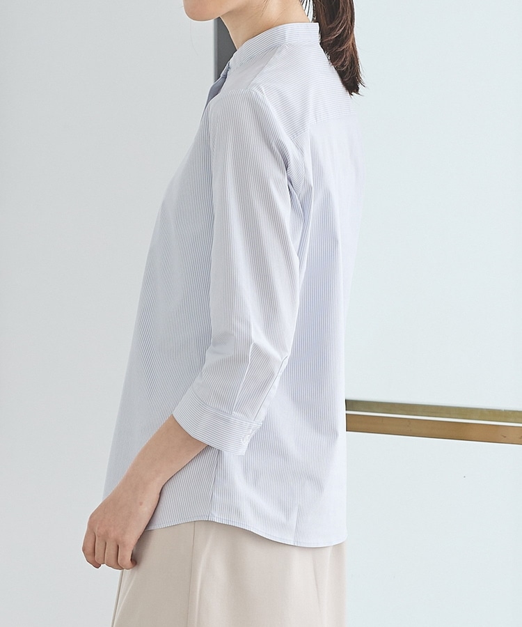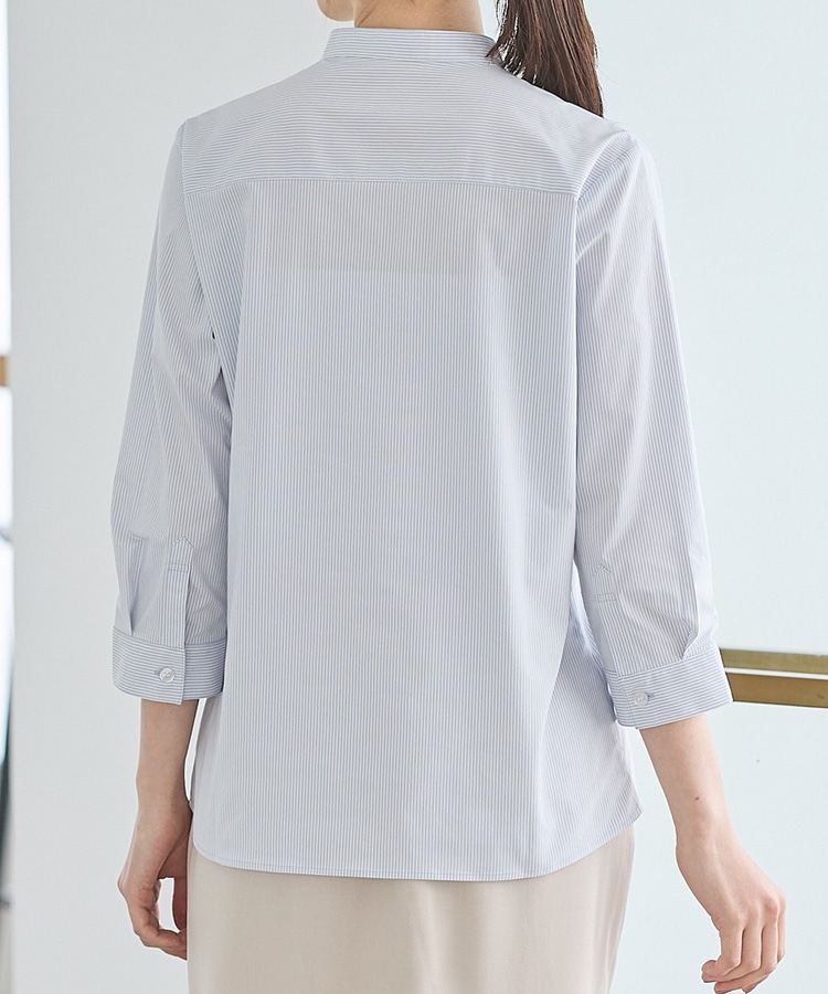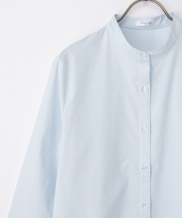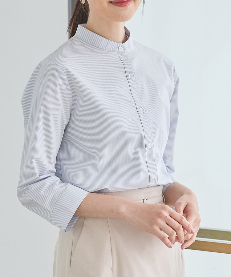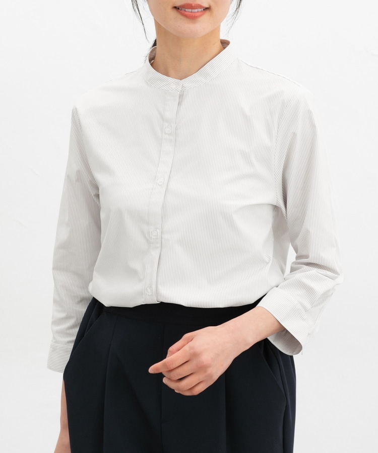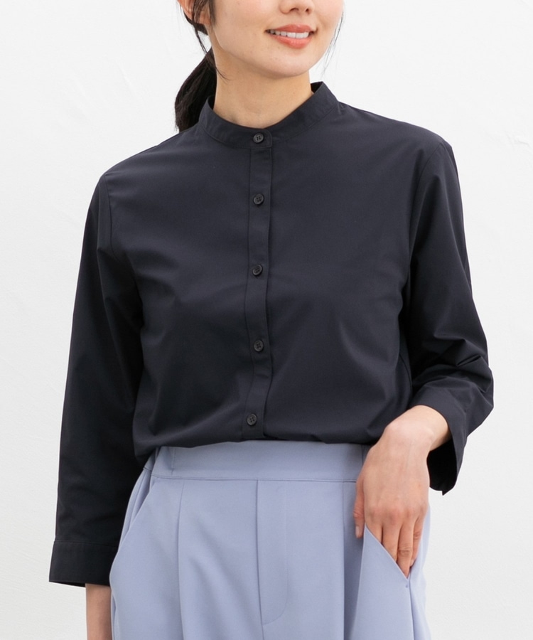 優し気なマオカラーで、着回し力抜群のシンプルデザイン。