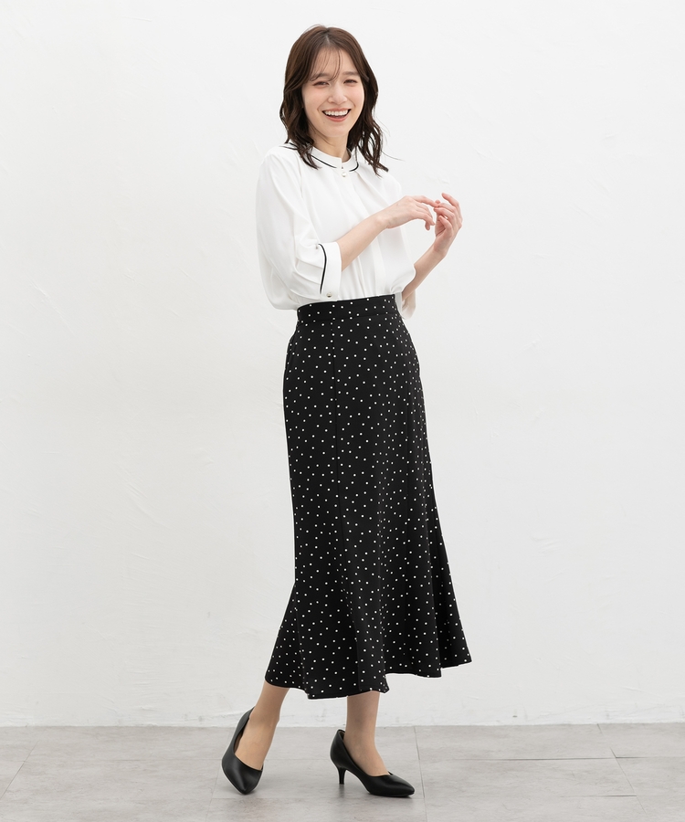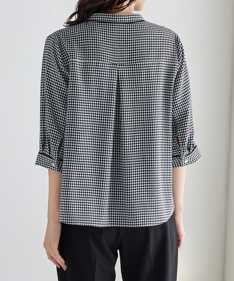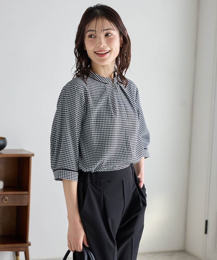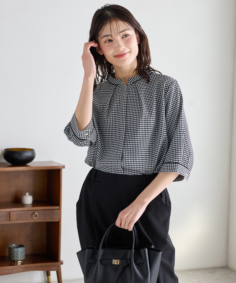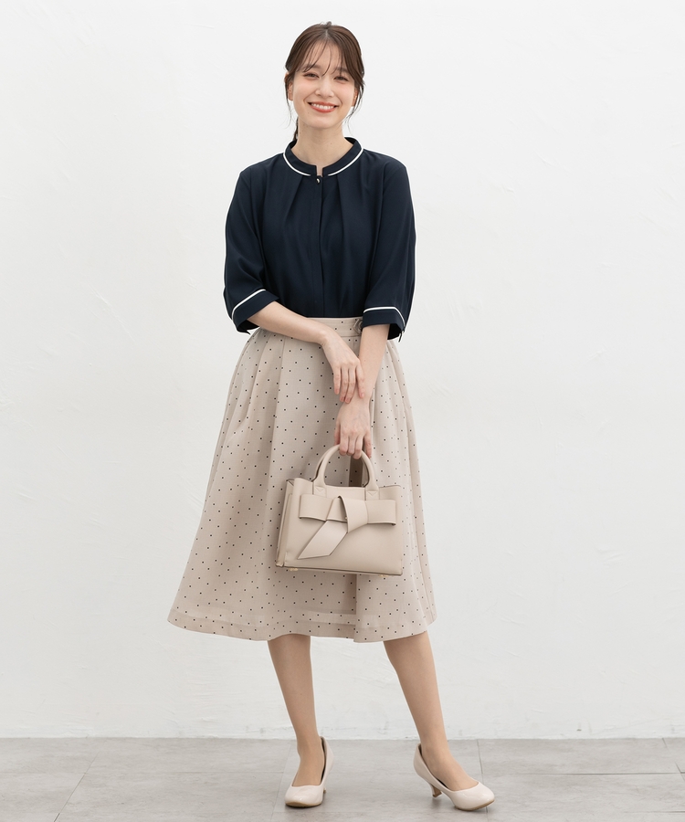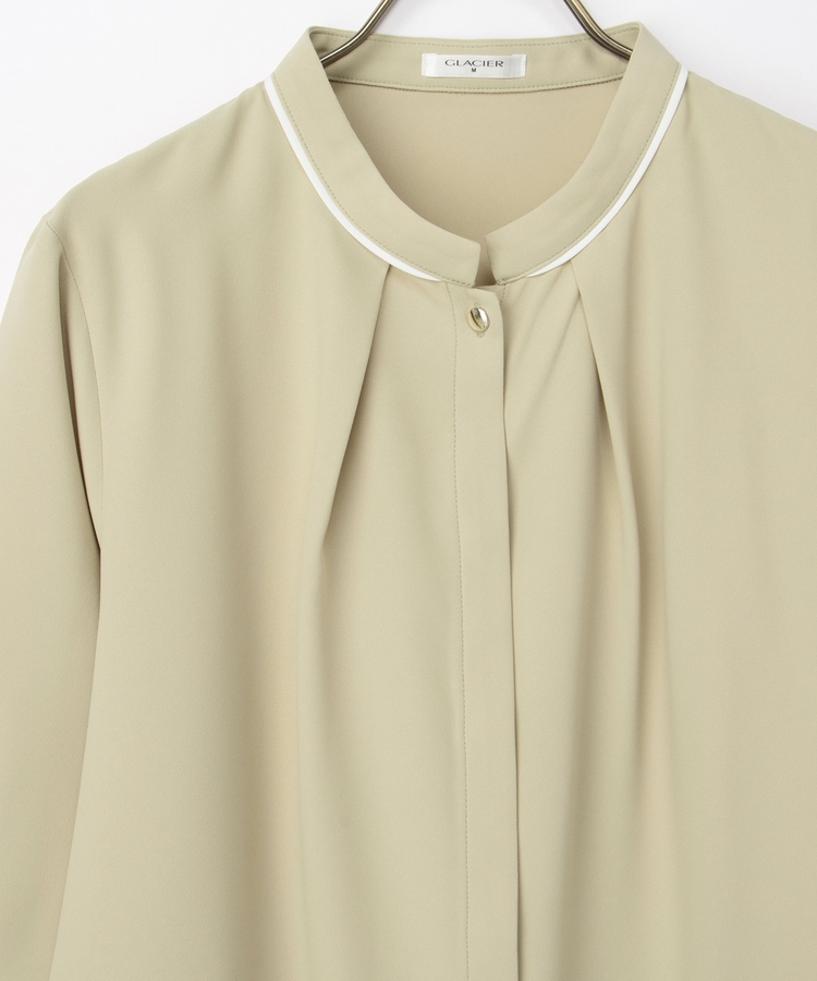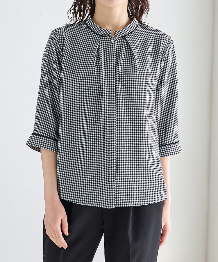 フロントボタンを隠した比翼仕立てでさらに上品な雰囲気に。