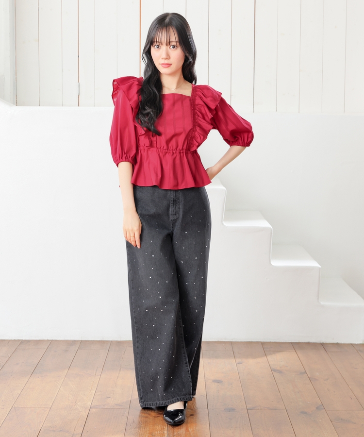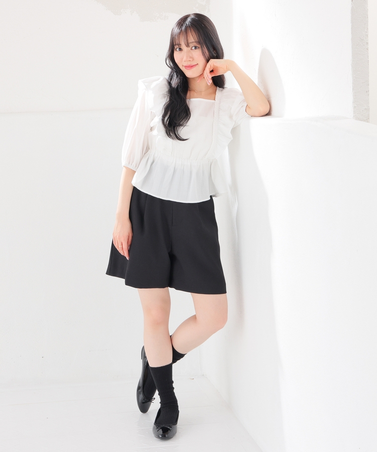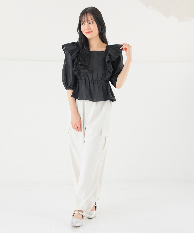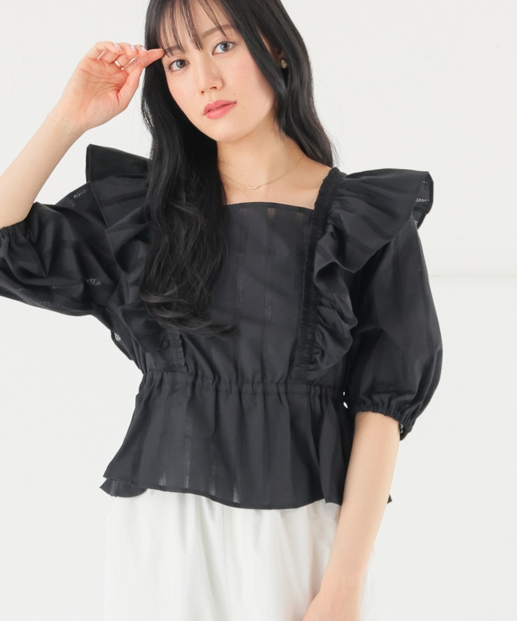 肩フリルブラウス
