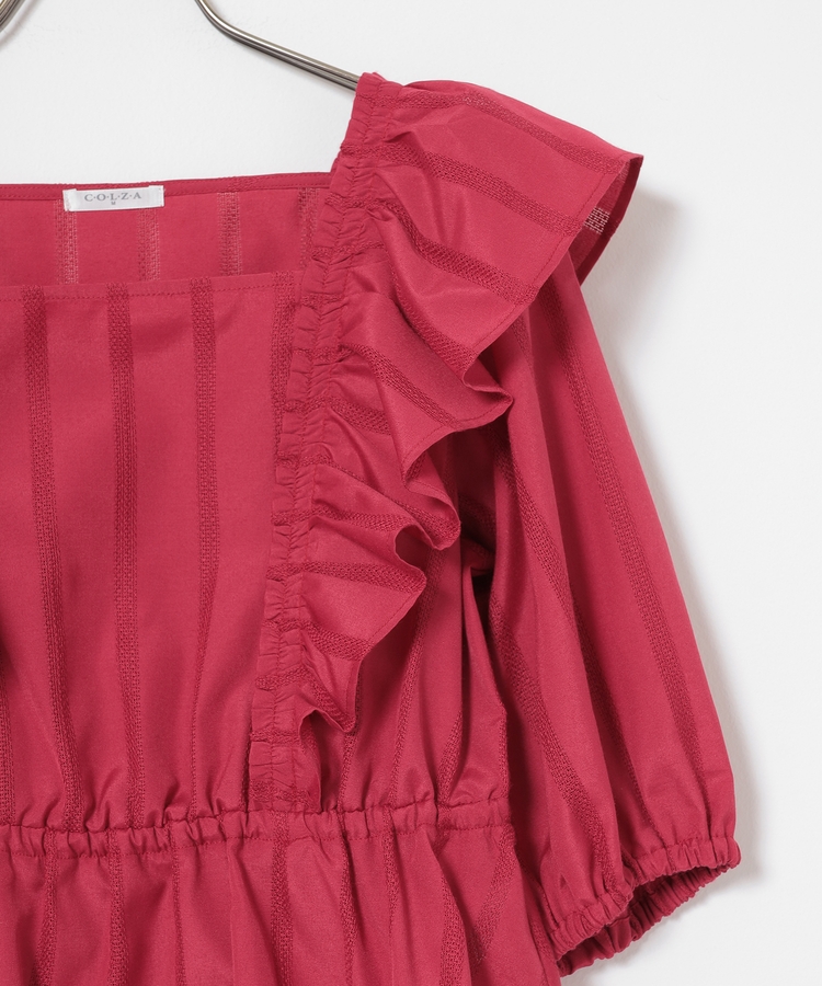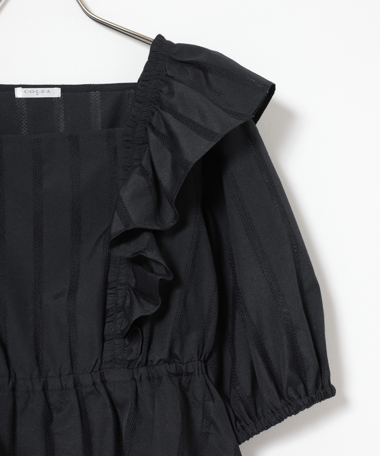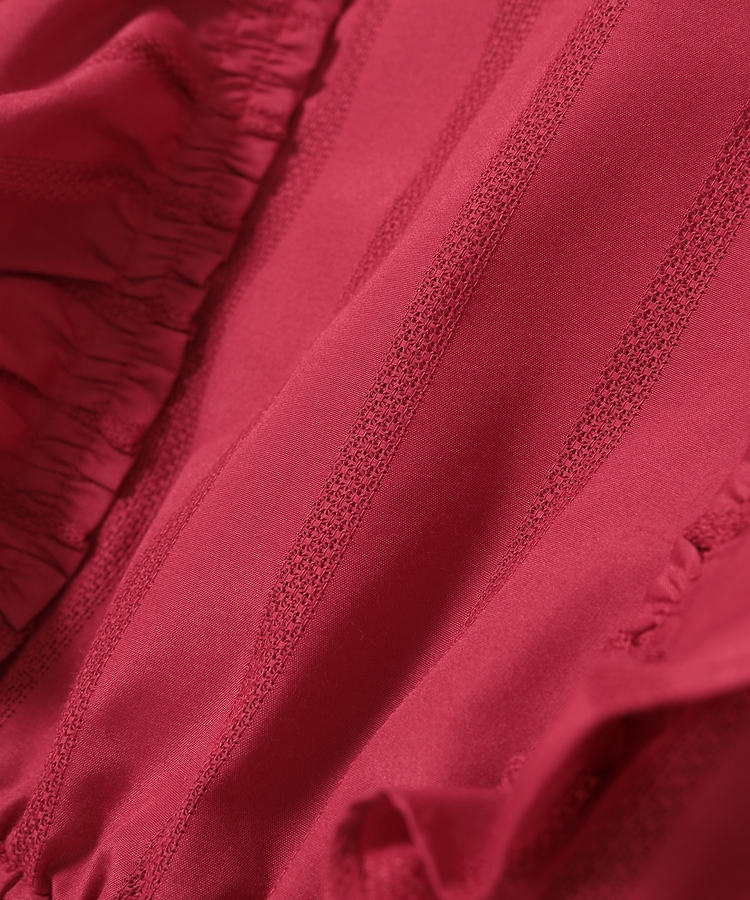 顔周りを華やかに見せる、バックまでたっぷり入れたフリルで存在感のあるデザイン。