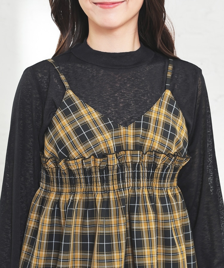 シャーリング使いで程よくフィットしながら、高めの切り替え位置から広がるシルエットで体型もカバー。