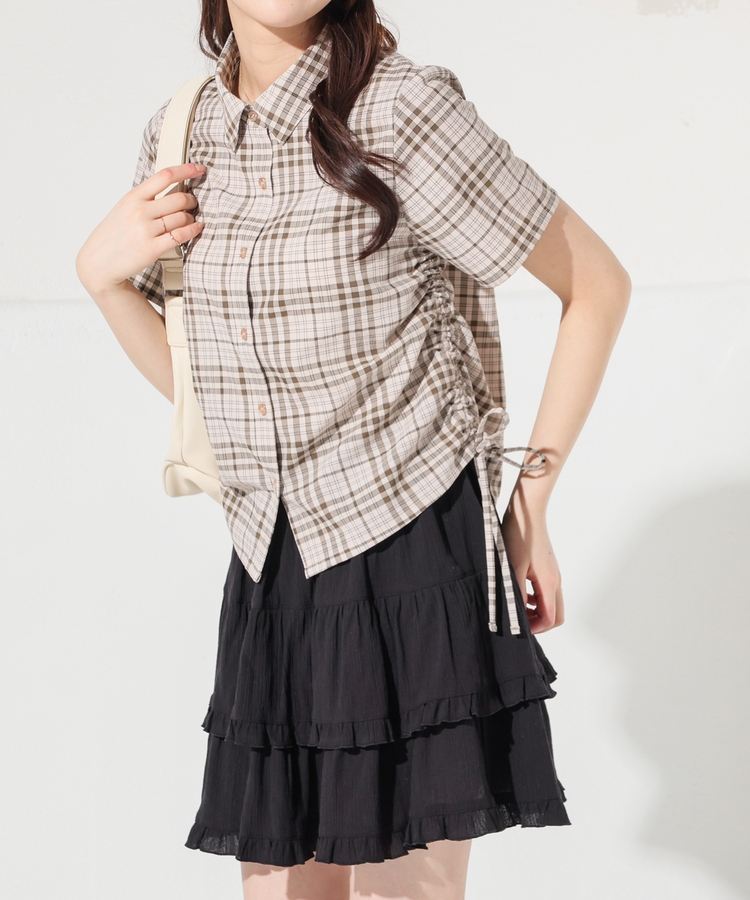 サイドのドロストでシルエットアレンジが楽しめるデザイン。