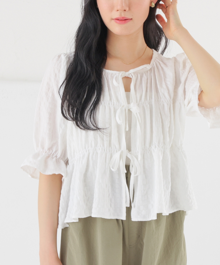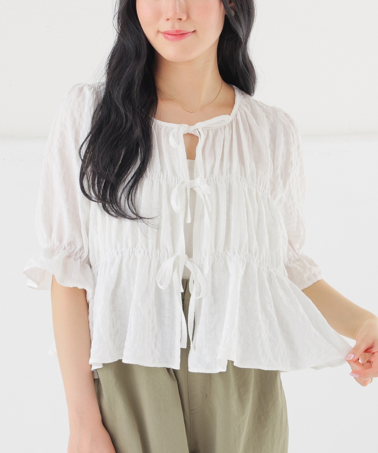リボンを結ぶのはもちろん、前を開けて羽織りとして使うのも◎