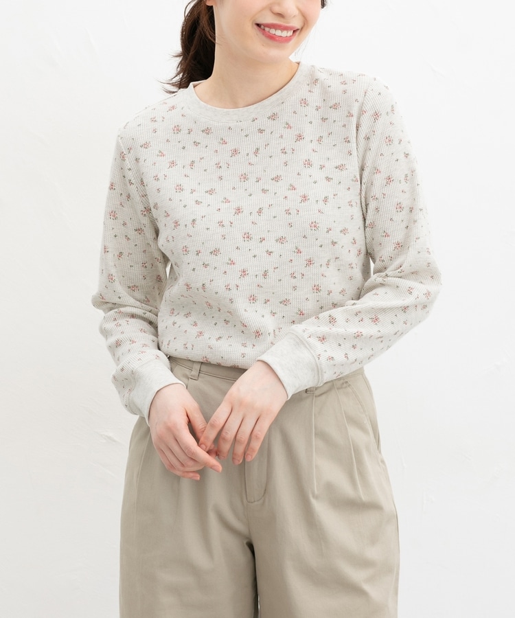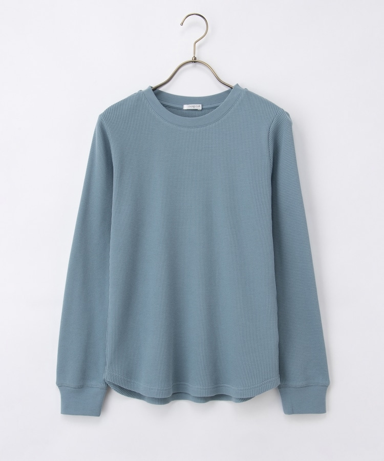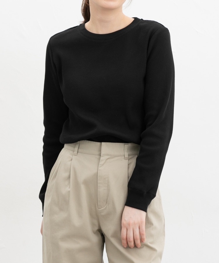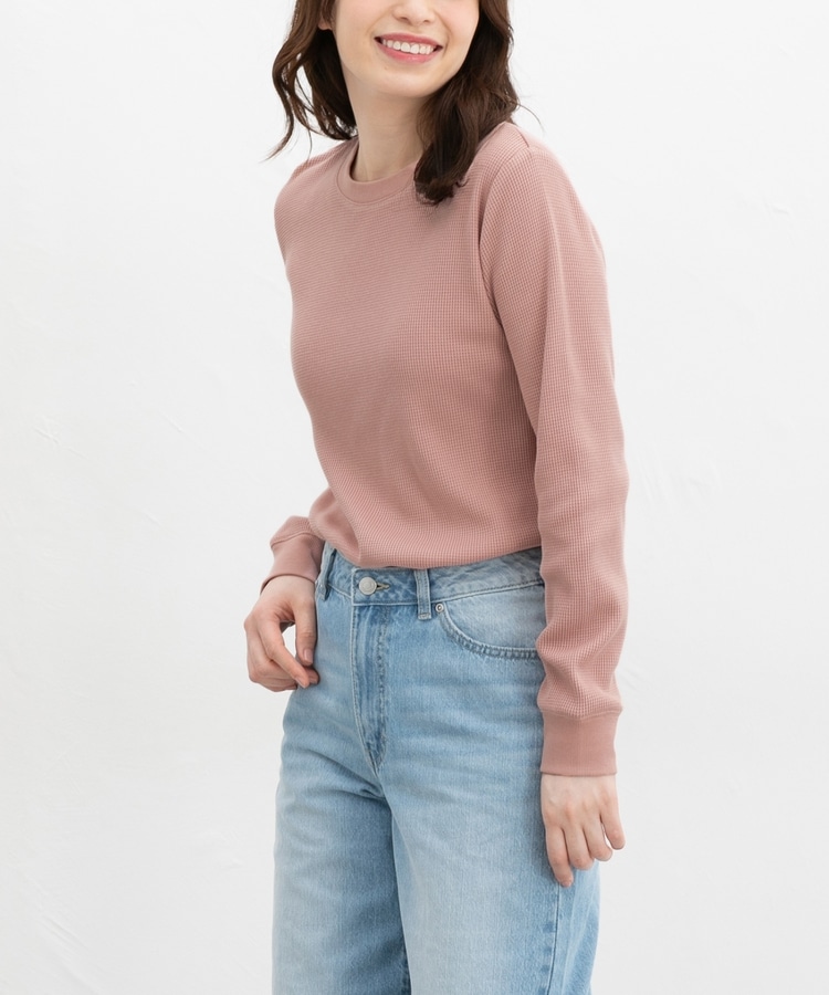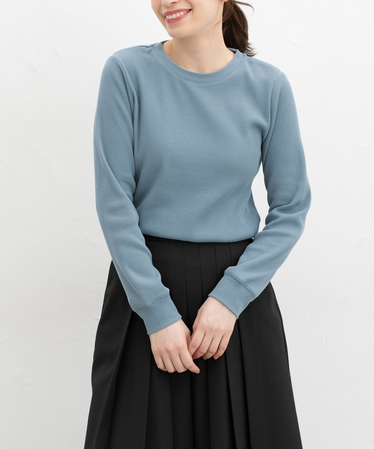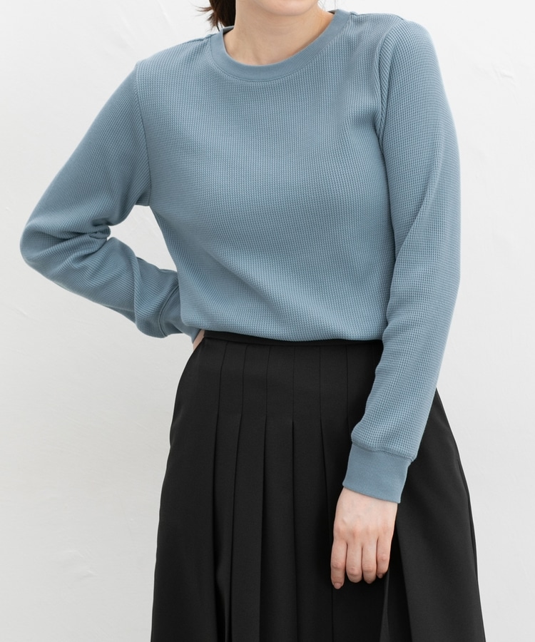 表面に立体感がある、着心地のよい綿混ワッフル素材。