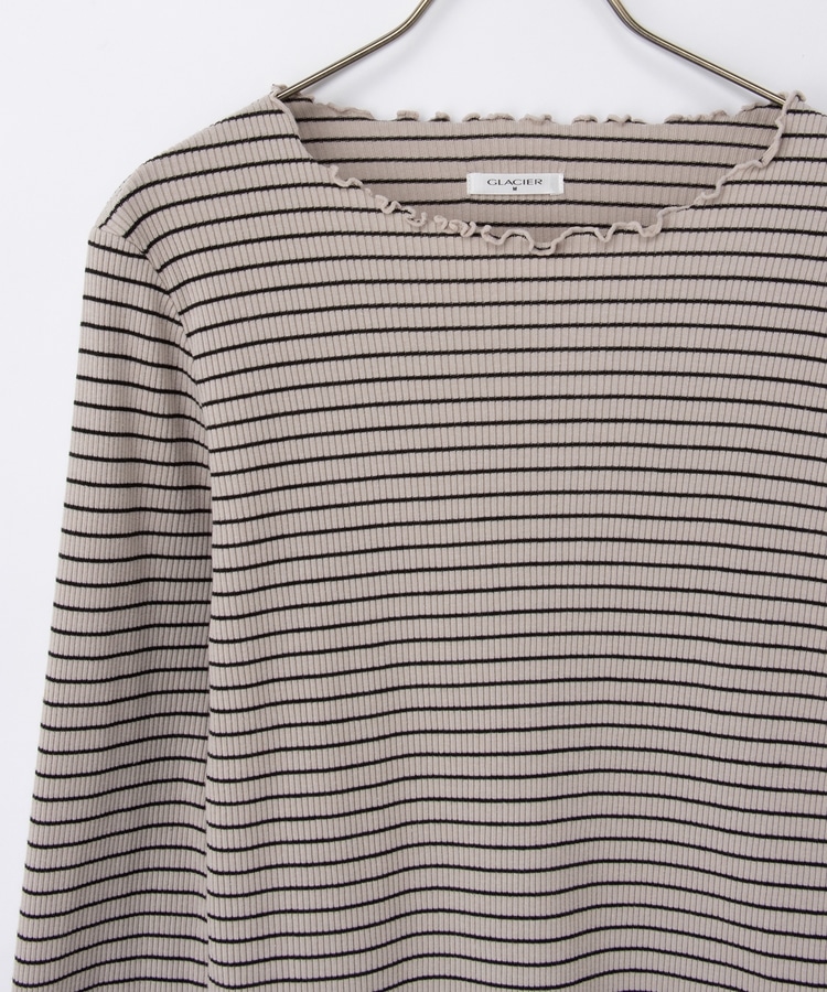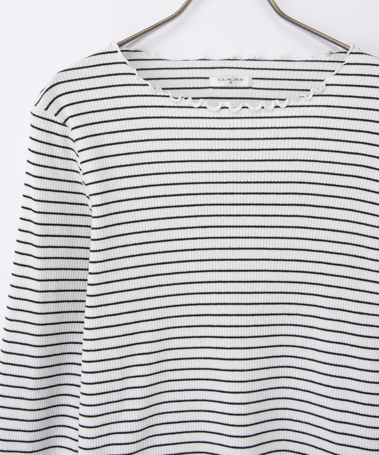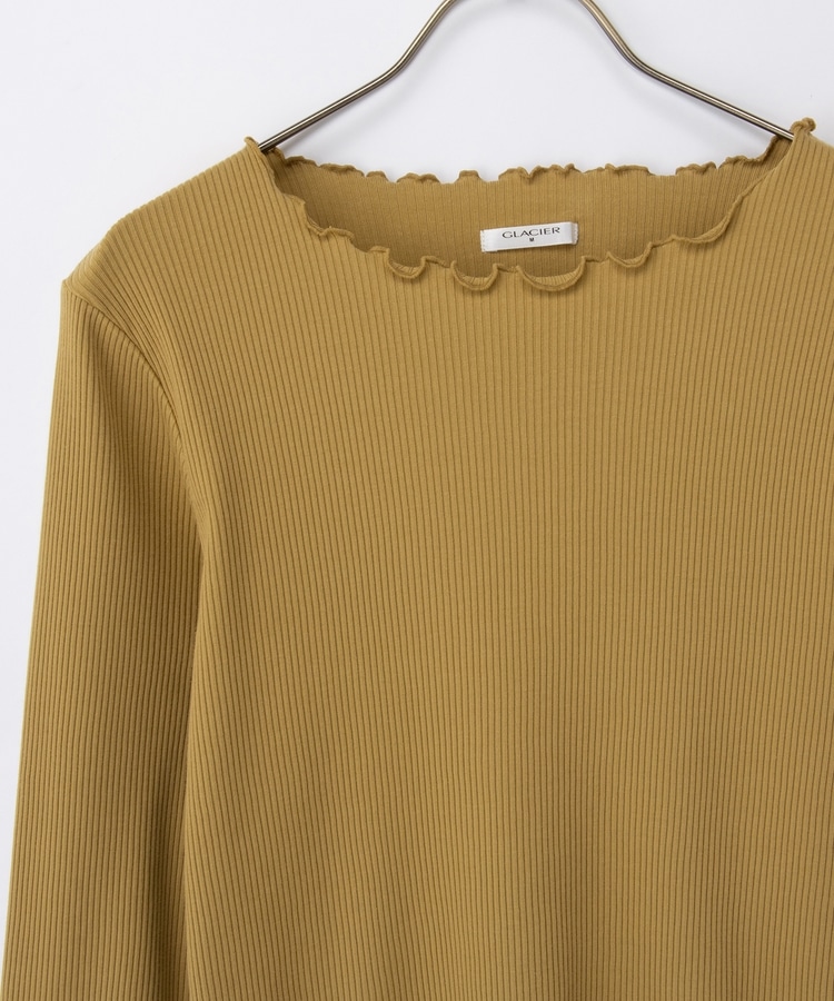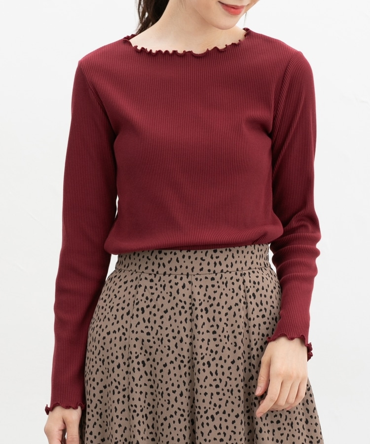 シンプルながら衿元や裾・袖口のメロー使いが大人可愛いデザイン。