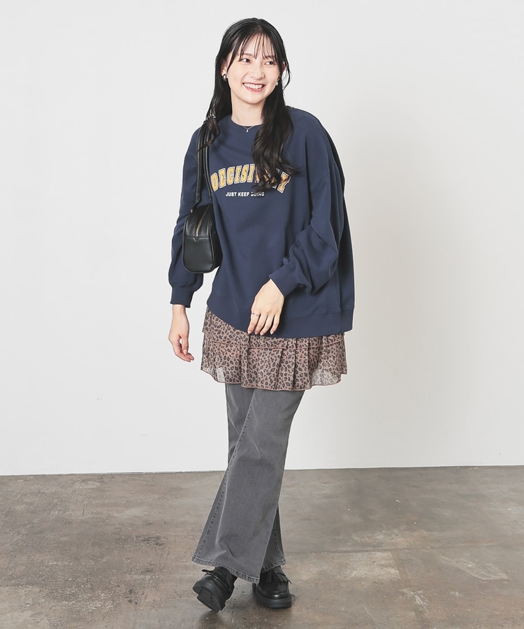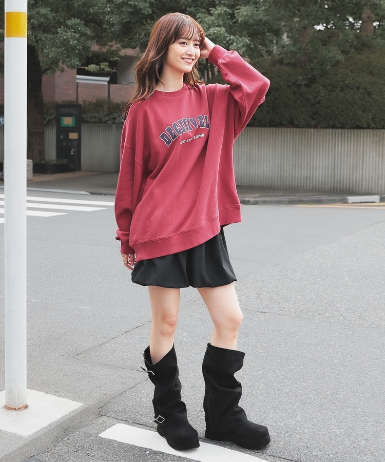 カジュアルなデニムからガーリーなスカートまで、どんなボトムスとも合い幅広い着回しに活躍。