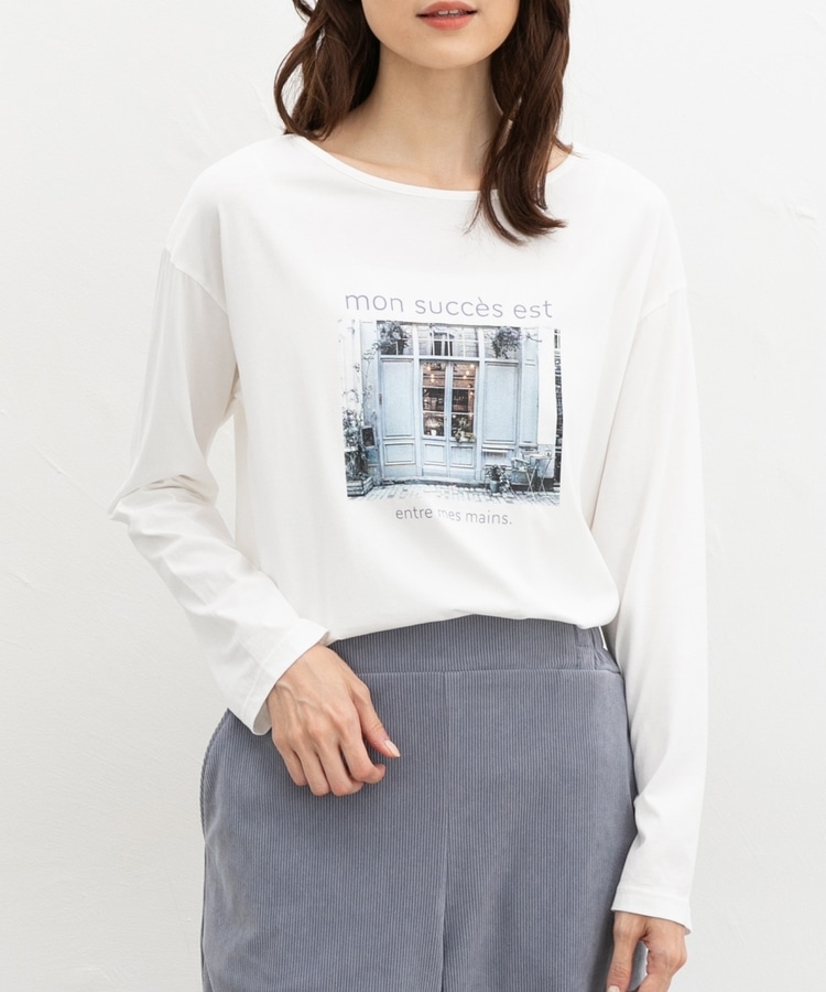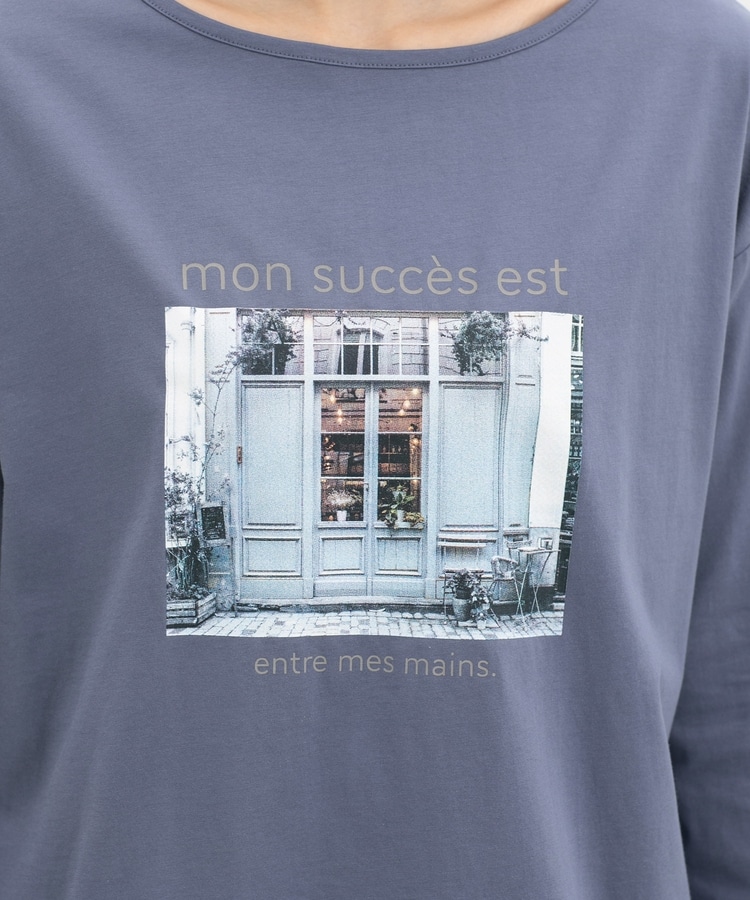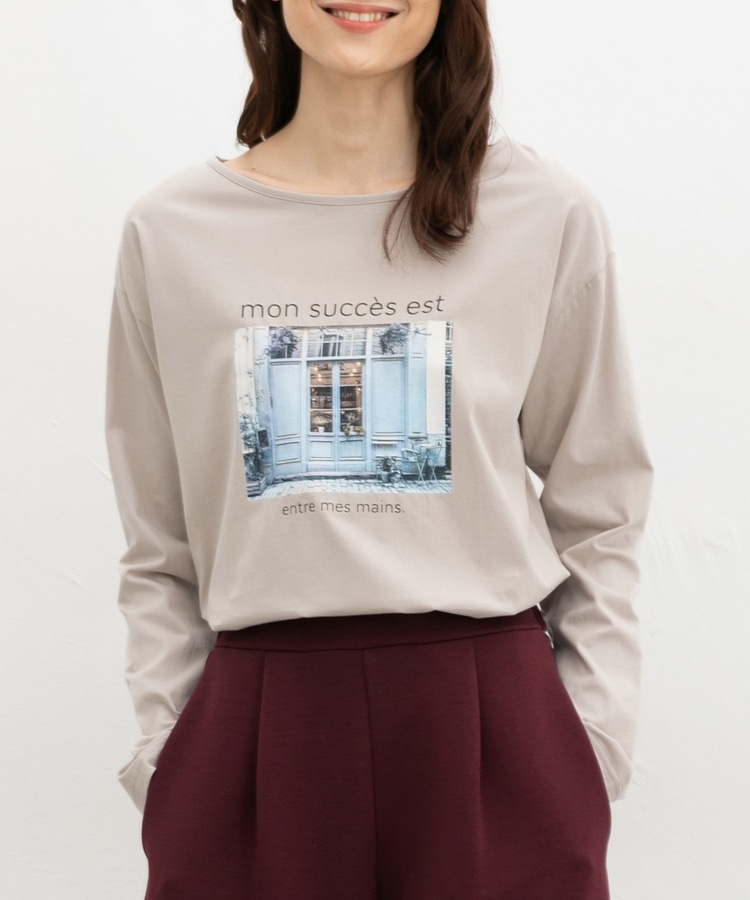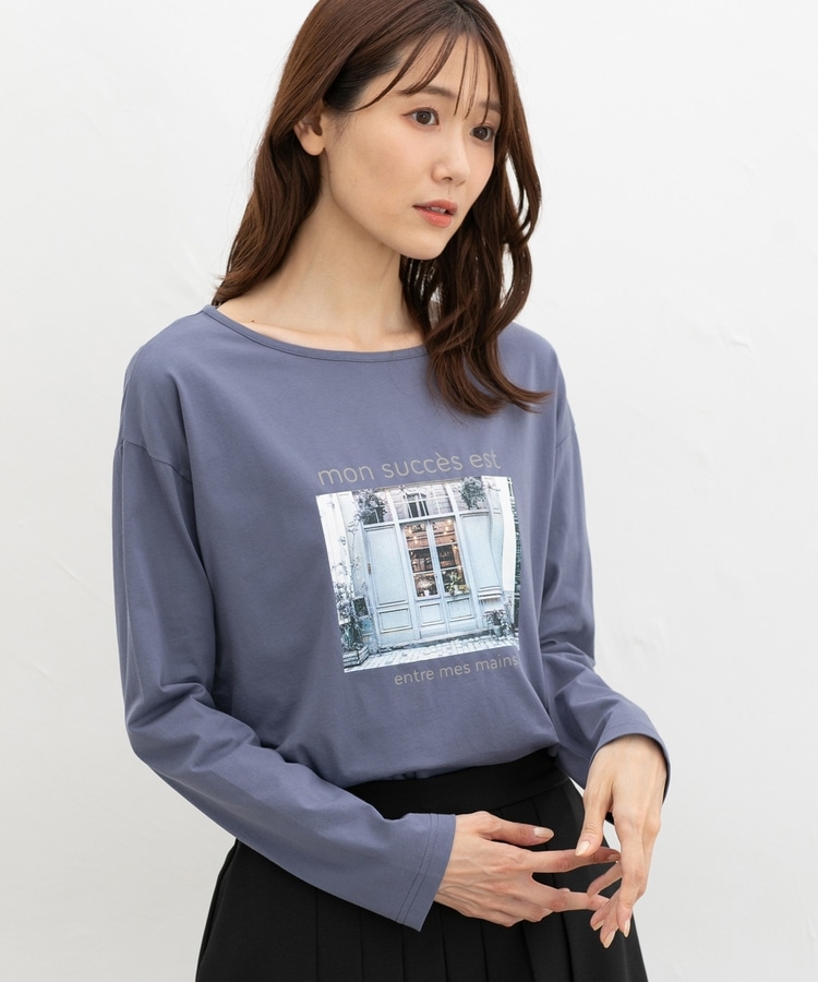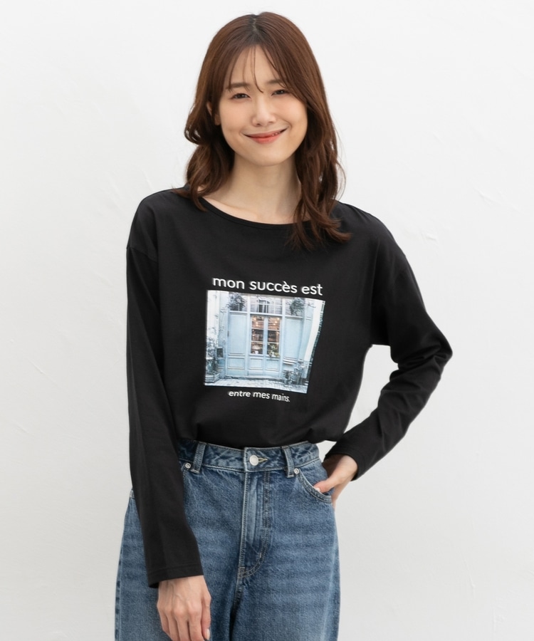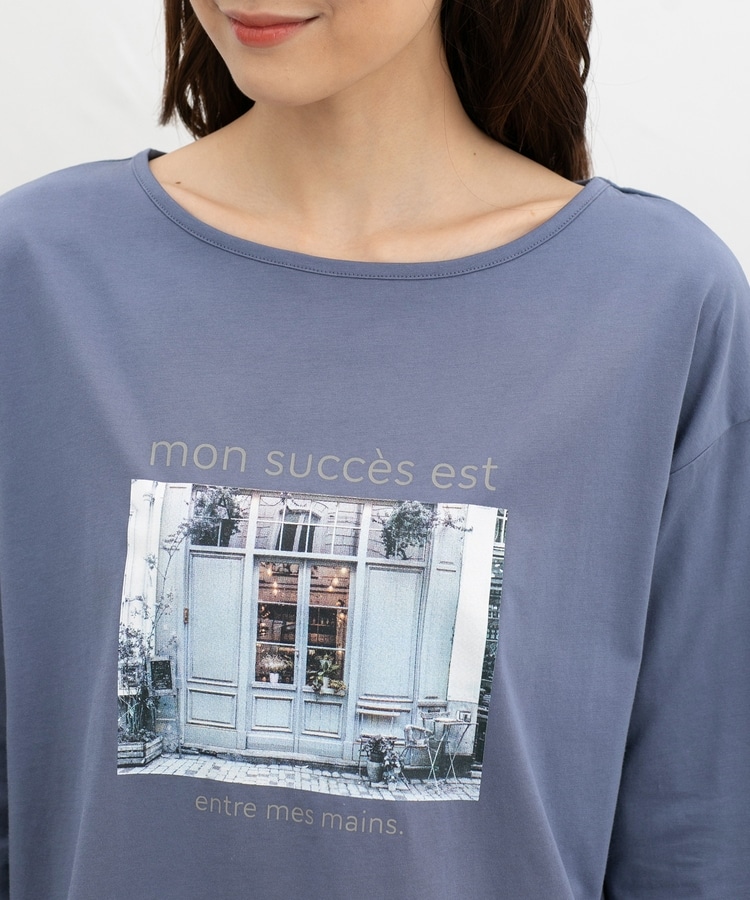 シンプルカラーのフォトプリントがお洒落な、1枚で着映えるデザイン。