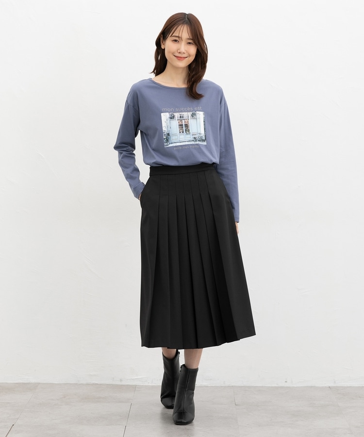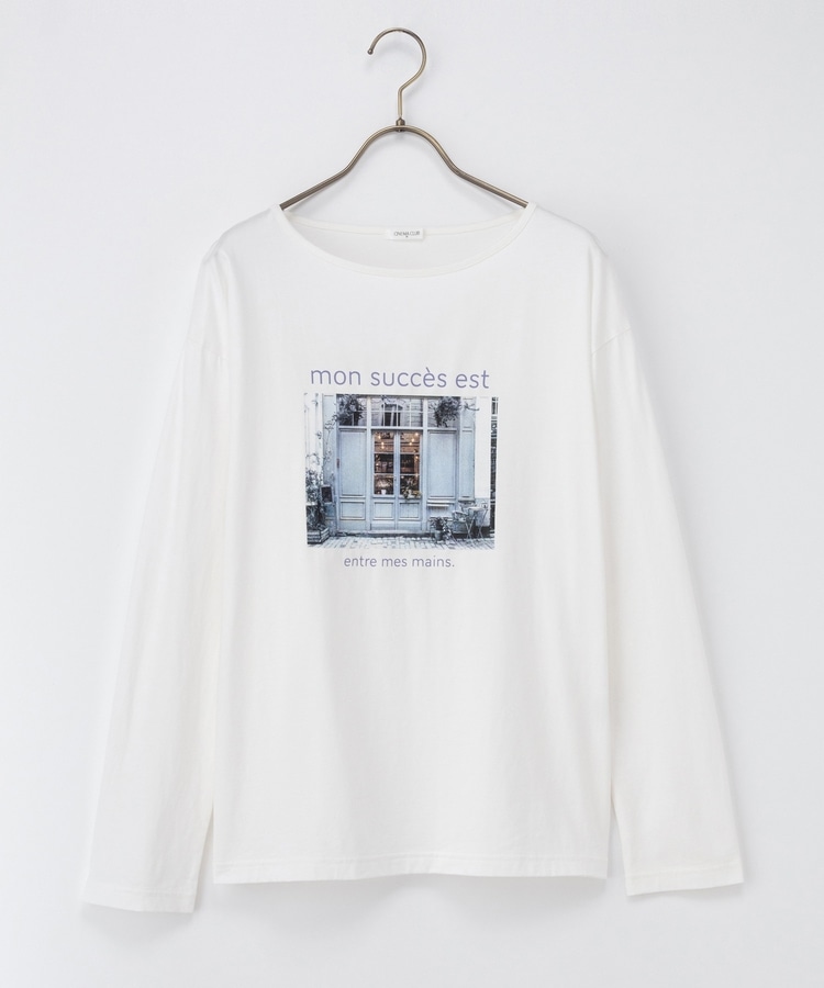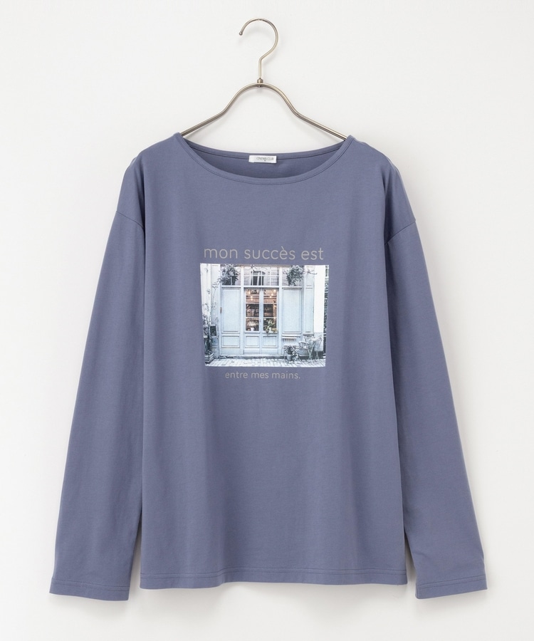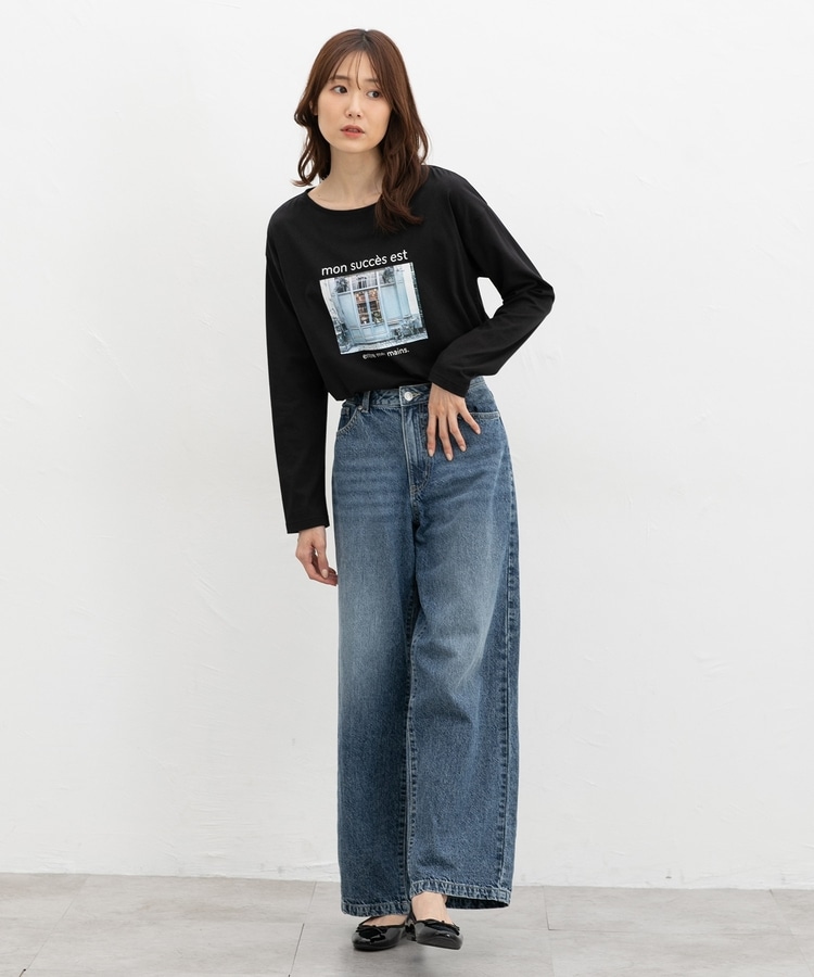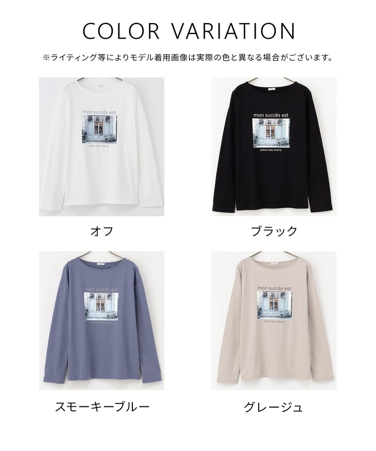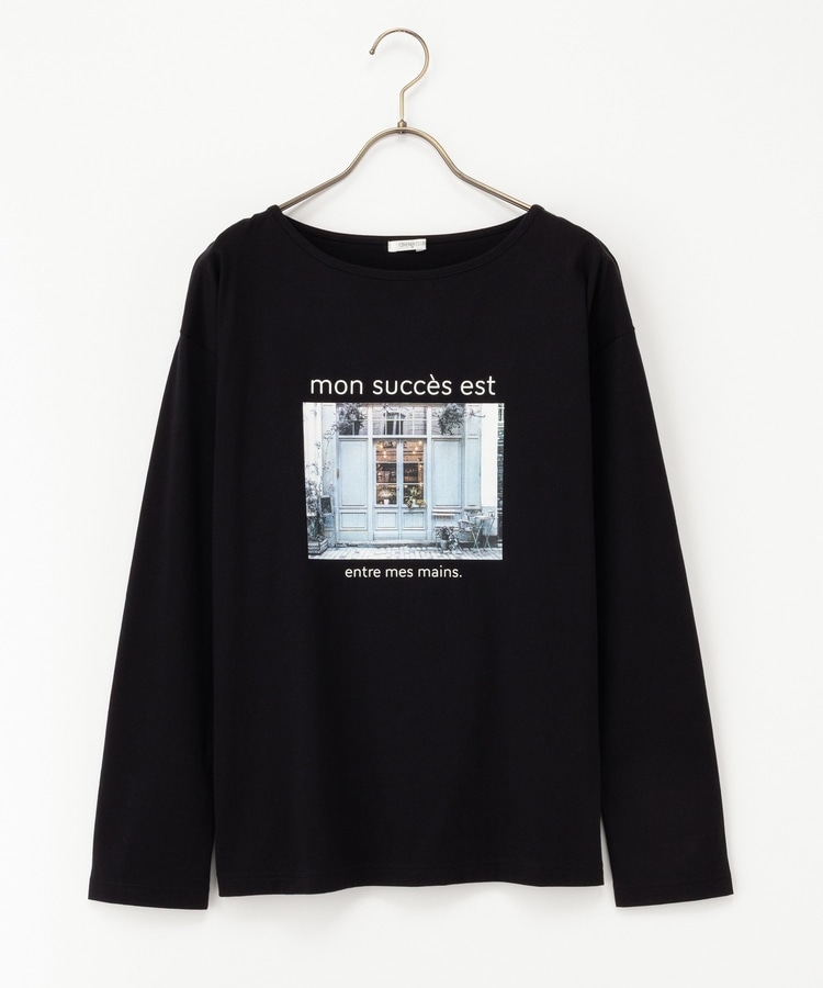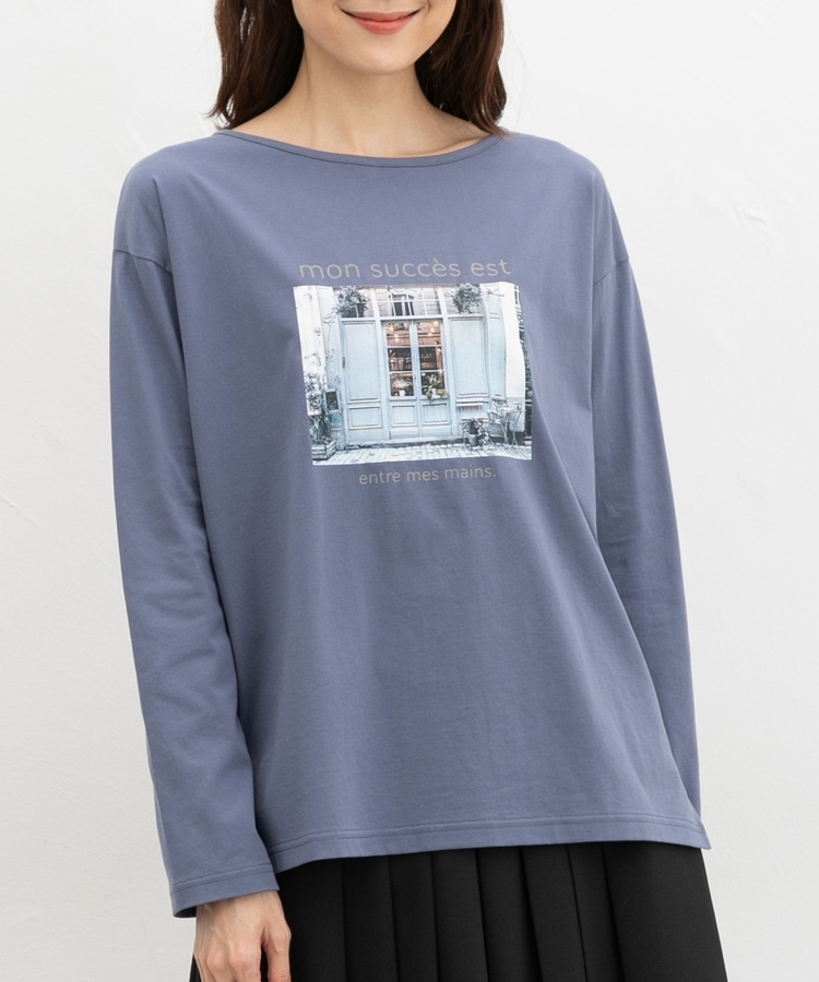 シンプルカラーのフォトプリントがお洒落な、1枚で着映えるデザイン。