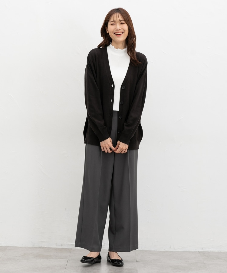 すっきりシルエットと縦目のラインでほっそり見せ♪