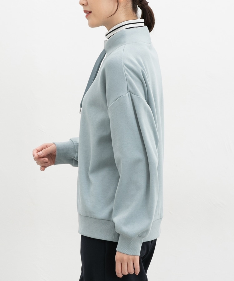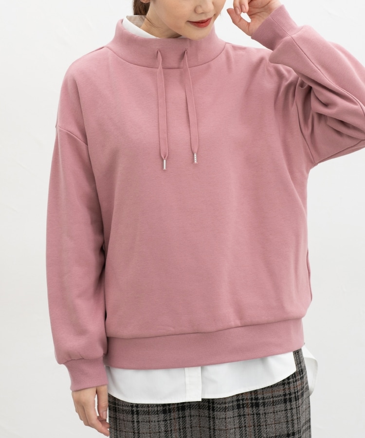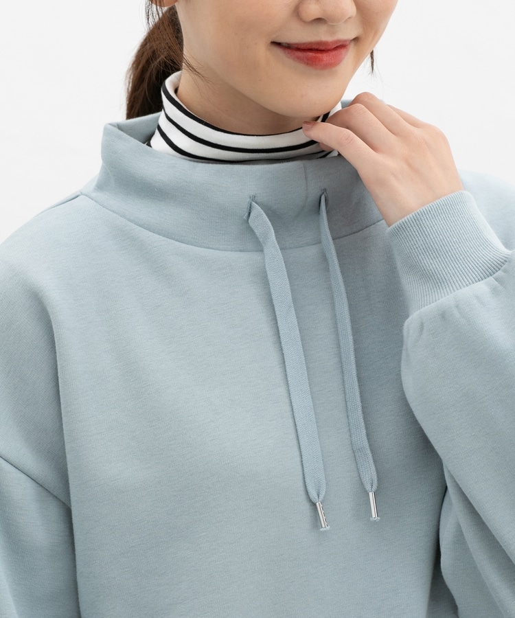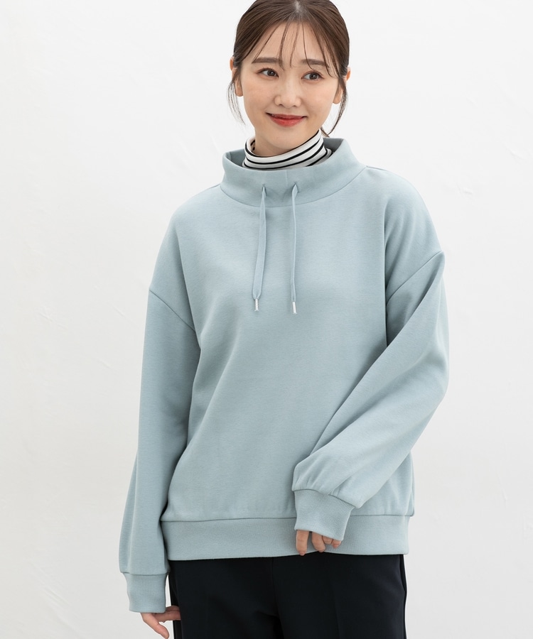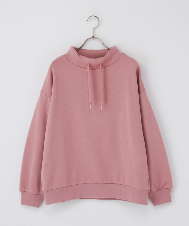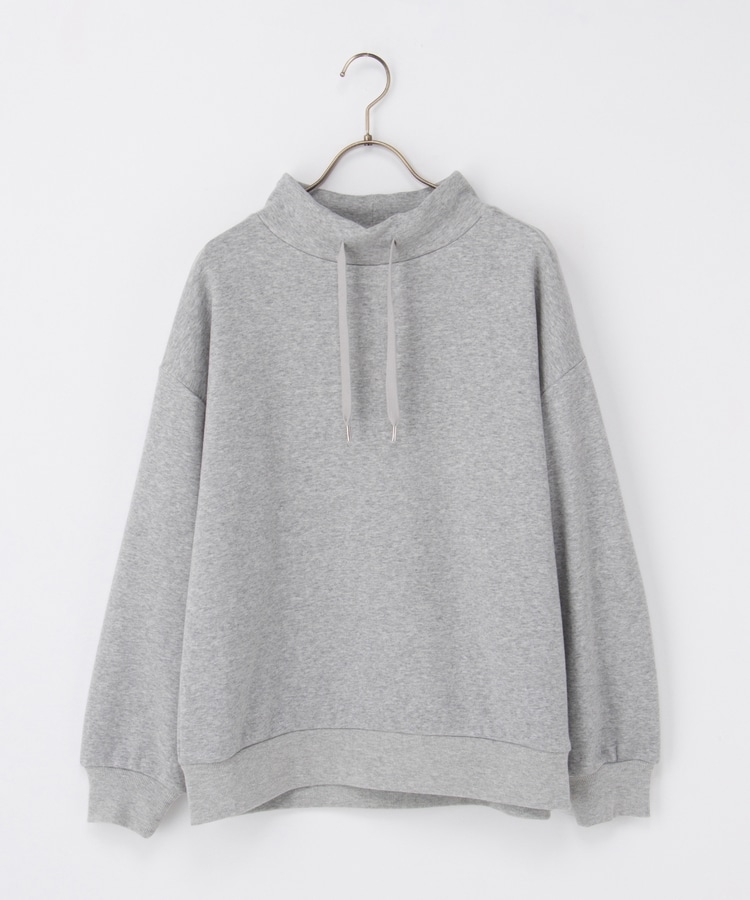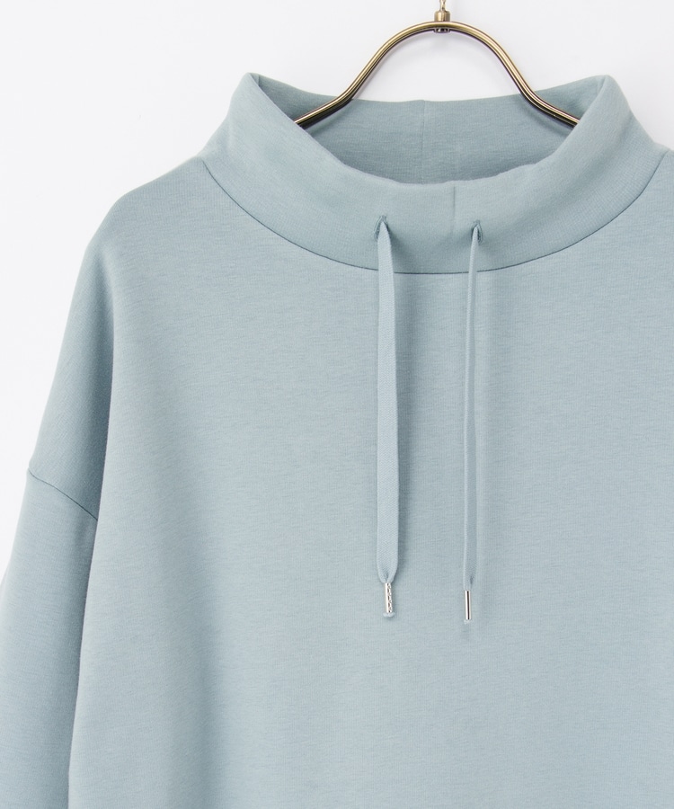 首元まであったかなスタンドネックに、衿元のスピンドルがアクセントになるシンプルデザイン。
