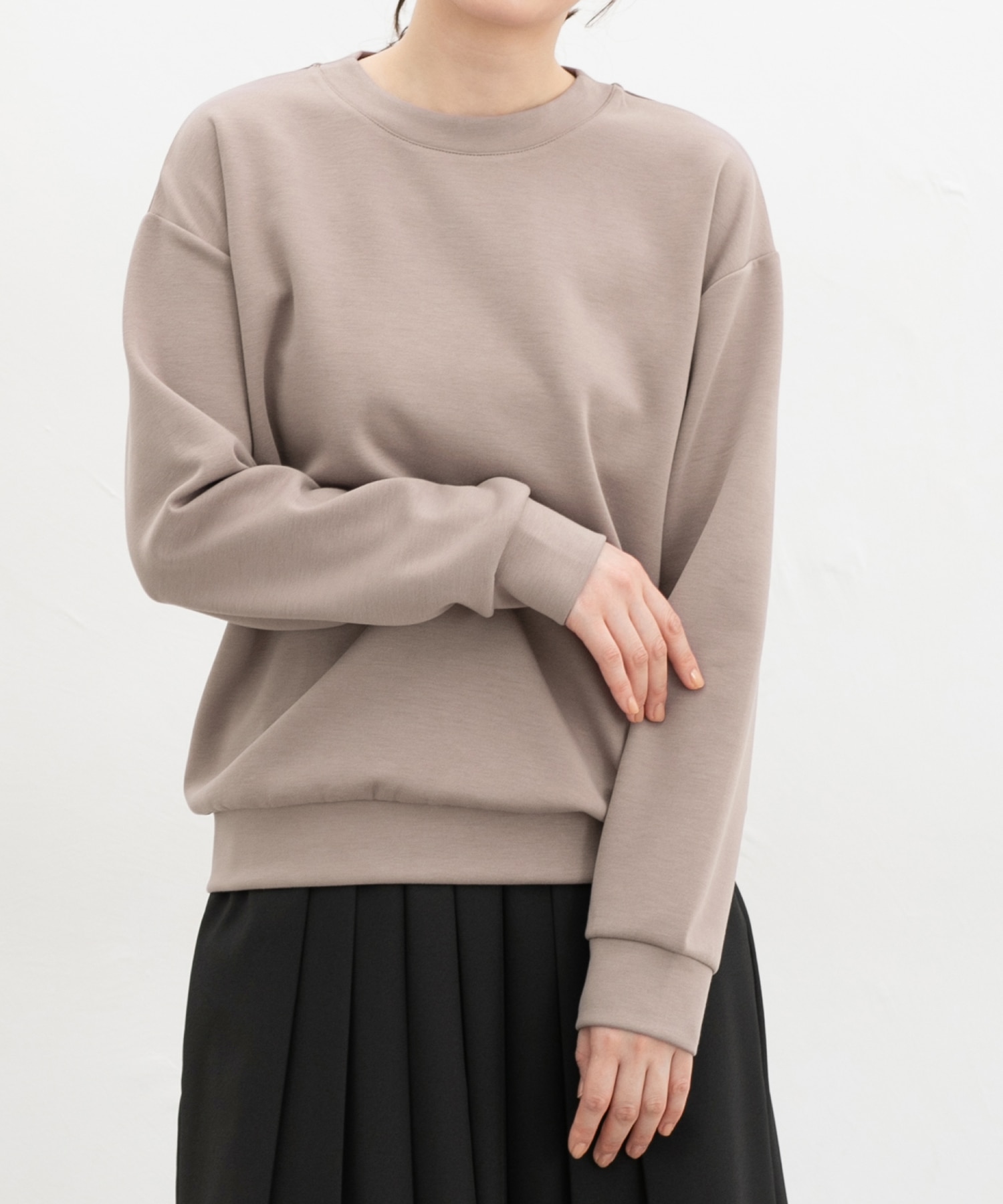 カジュアルすぎない大人な着こなしが楽しめる、両面が滑らかなレーヨン混のきれいめスウェット素材。