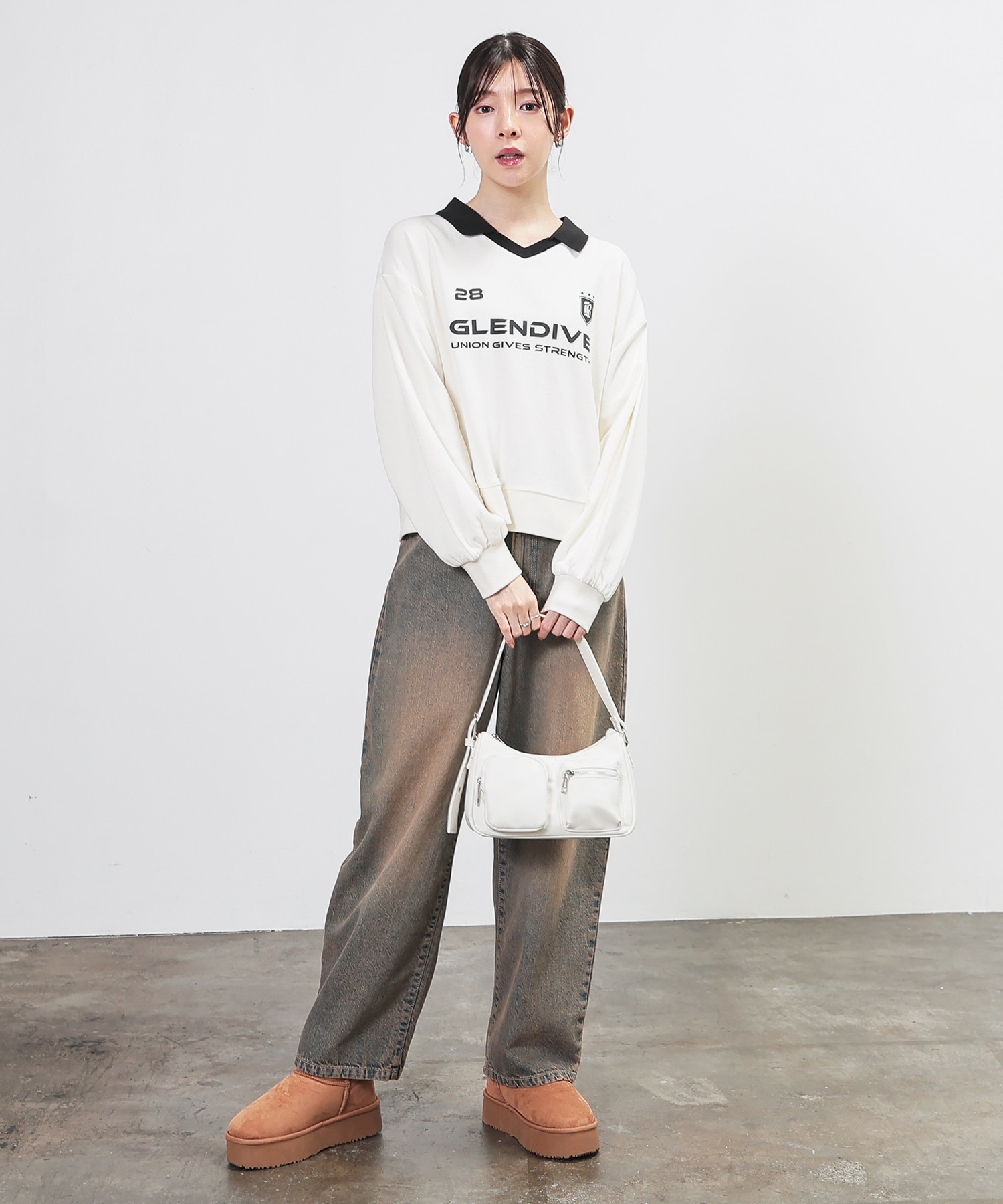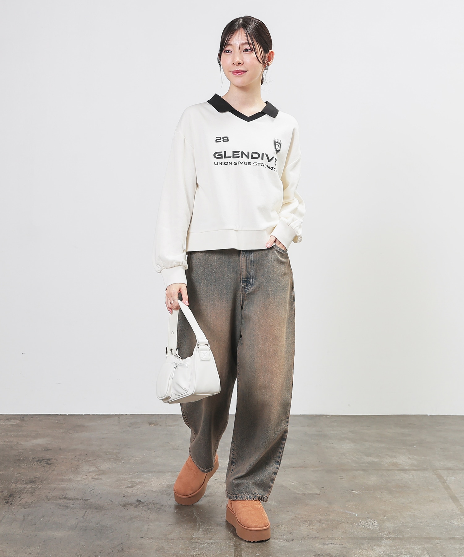 デニム合わせの王道カジュアルはもちろん、ミニスカートと合わせたガーリースタイルにも、幅広く活躍。